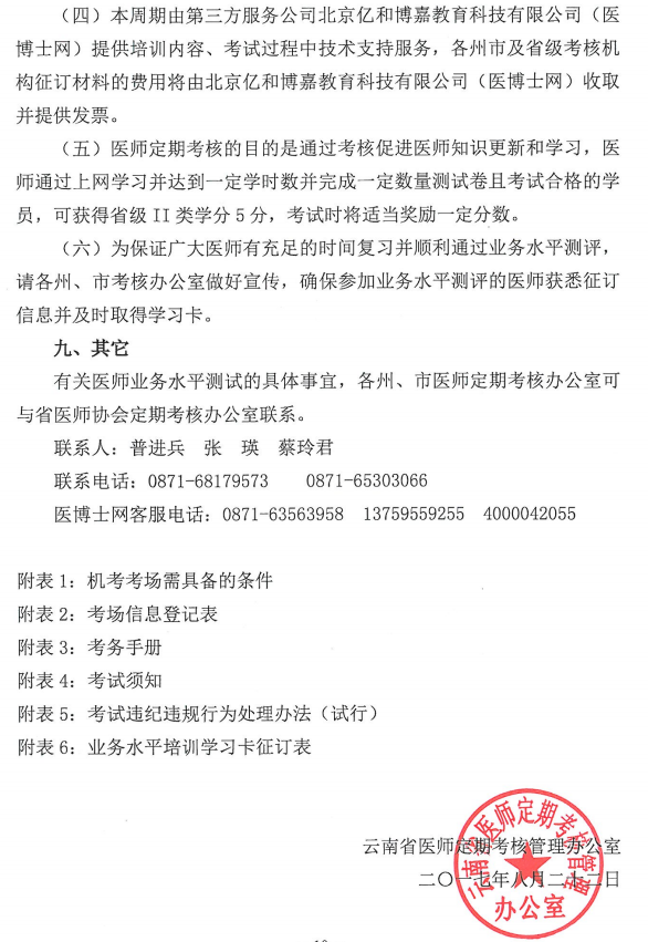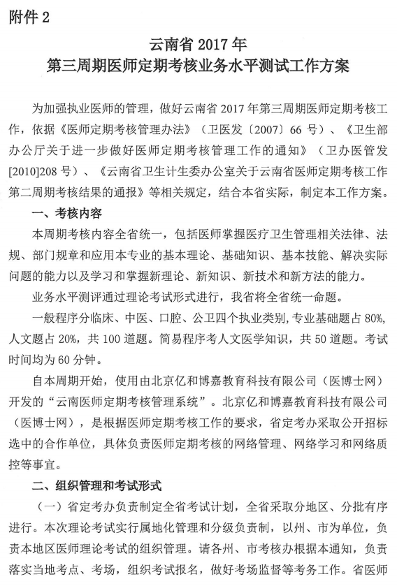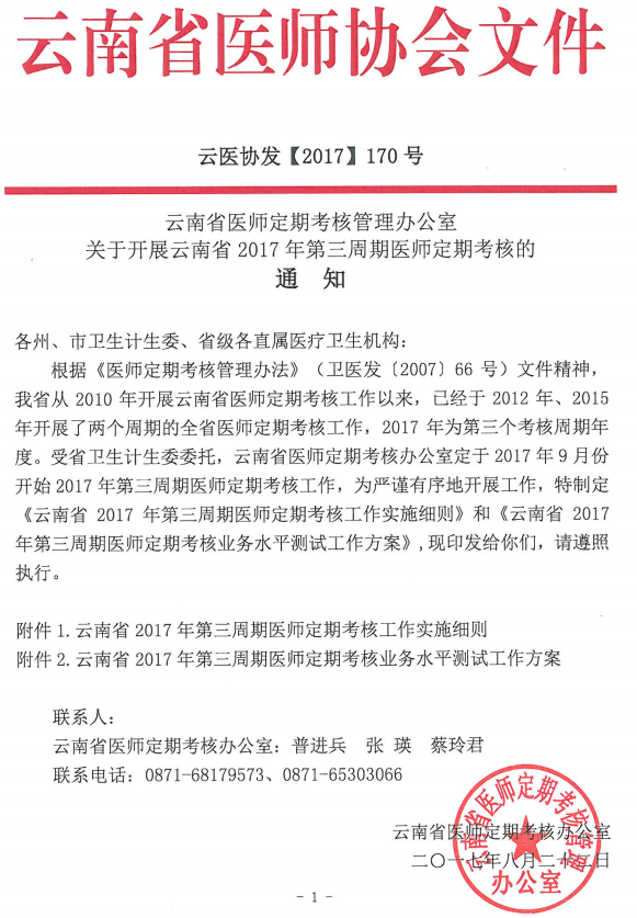 云医协发[170号]关于开展云南省2017年第三周期医师定期考核的通知