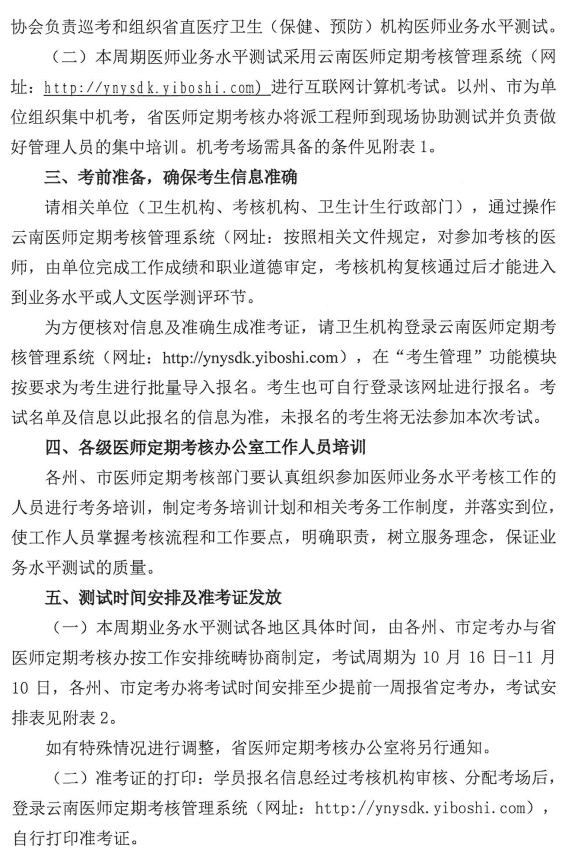 关于云南省第二周期医师定期考核业务水平测评不合格人员培训及考核的通知