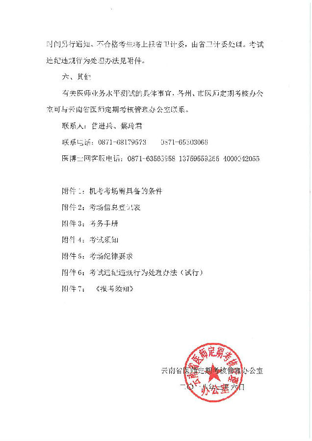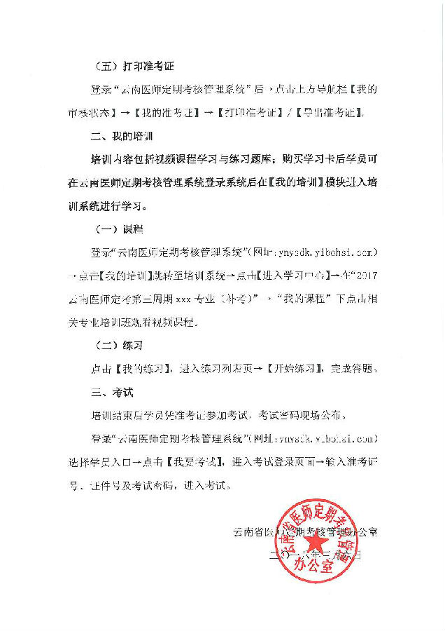 关于开展云南省2017年第三周期医师定期考核的定考安排