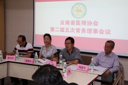 云南省医师协会二届五次常务理事会于2016年6月22日在云南博亚医院行政中心会议室召开。会议对2016年上半年工作进行了总结,通报了云南省庆祝2016年中国医师节活动及第十届中国医师奖颁奖活动情况以及已换届的二级分支机构选举结果;审议通过了名誉会长,理事、常务理事、副会长增补及变更,二级分支机构增补、变更副主任委员名单,新申请拟组建二级分支机构名单,新申请加入团体会员单位名单,妇科医师分会申请增加青年委员等事宜。