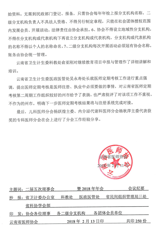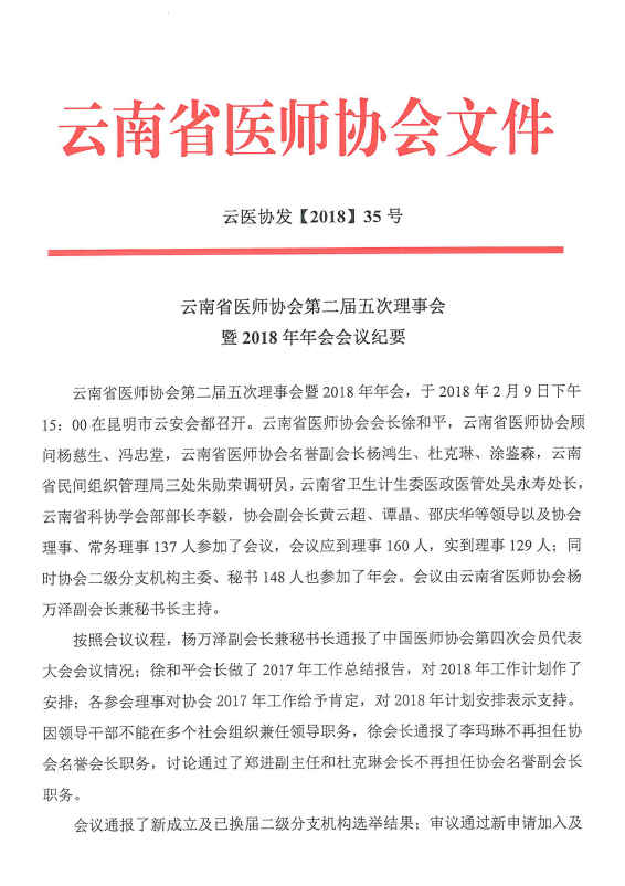 35号-云南省医师协会第二届五次理事会暨2018年年会会议纪要
