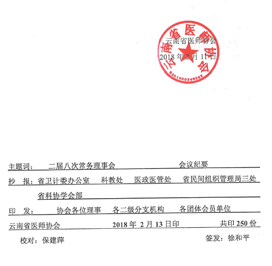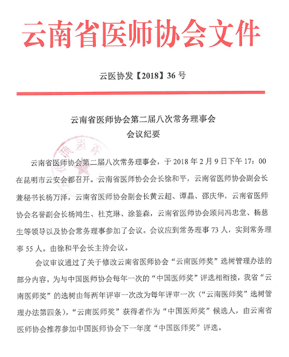 35号-云南省医师协会第二届五次理事会暨2018年年会会议纪要