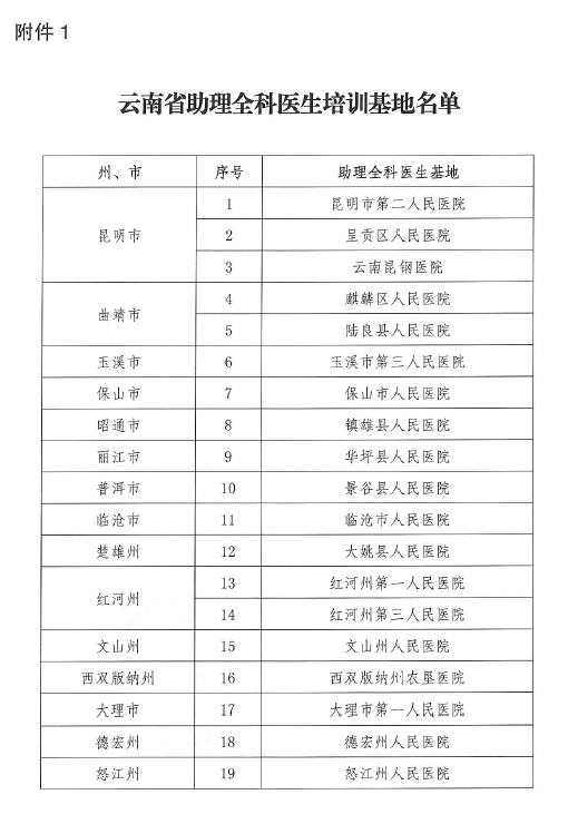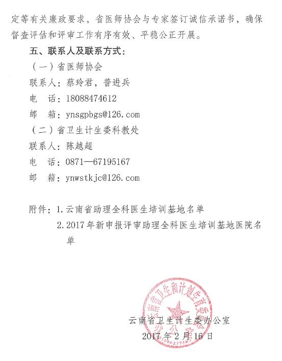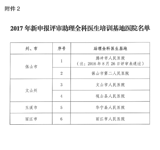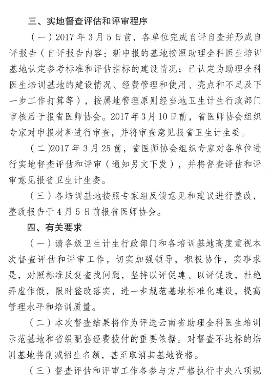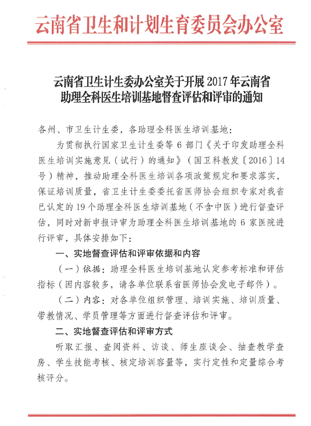 2017年云南省助理全科医生培训基地督查评估和评审的通知