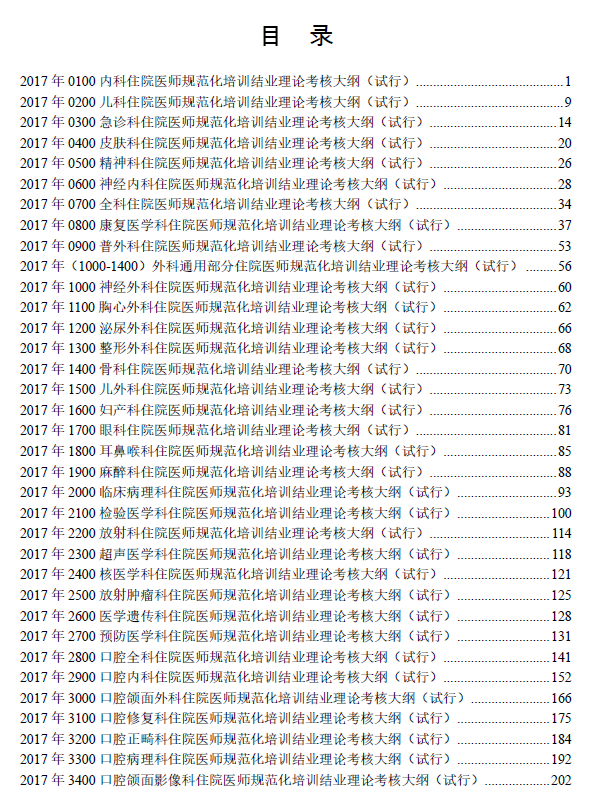 2017年住院医师规范化培训结业理论考核大纲(试行)