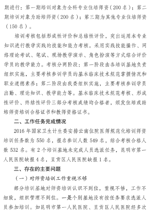 云南省卫生计生委办公室关于2016年云南省住院医师规范化培训师资培训的情况通报