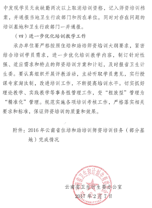 云南省卫生计生委办公室关于开展2017年云南省住院医师规范化培训和助理全科医生培训结业考核的通知