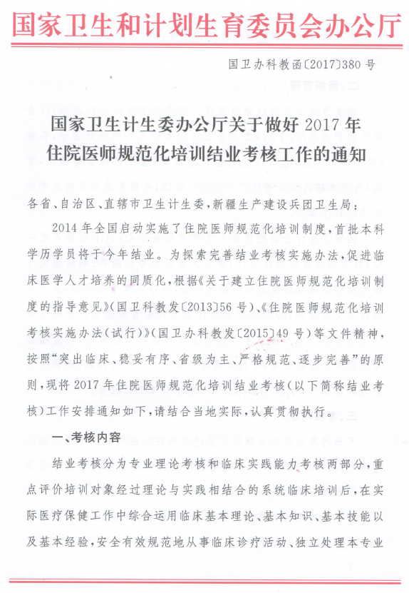 国家卫计委办公厅关于做好2017年住院医师规范化培训结业考核工作的通知.pdf