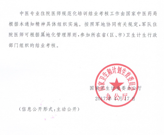国家卫计委办公厅关于做好2017年住院医师规范化培训结业考核工作的通知