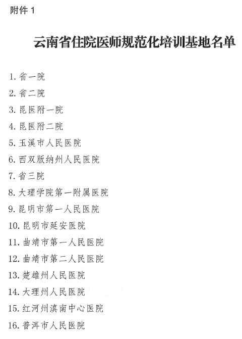 云南省卫生计生委办公室关于公布2017年云南省住院医师规范化培训和助理全科医生培训结业考核(西医类)合格人员名单的通知