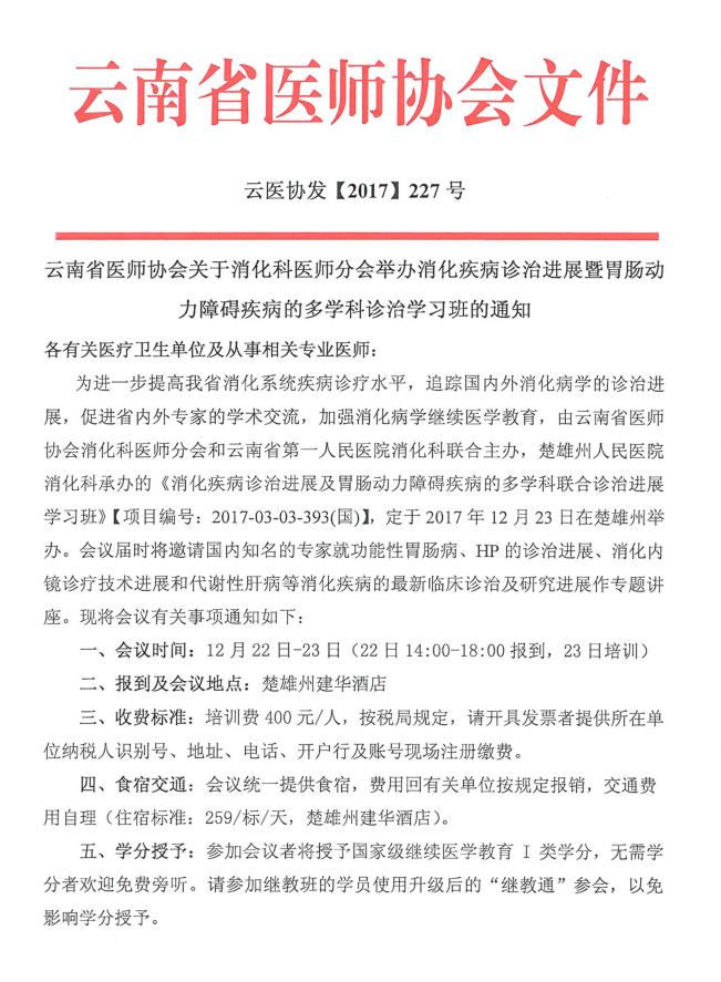 消化科医师分会举办消化疾病诊治进展暨胃肠动力障碍疾病的多学科诊治学习班通知