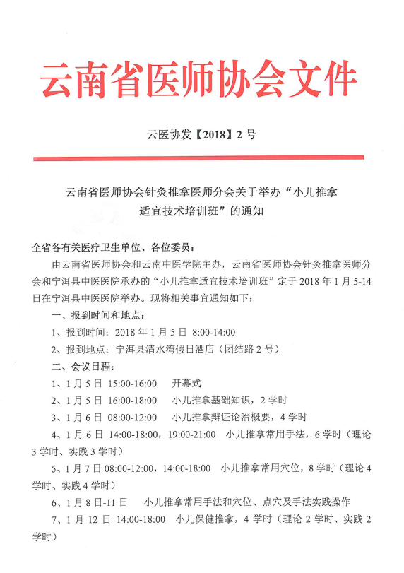 针灸推拿医师分会举办“小儿推拿适宜技术班”的通知