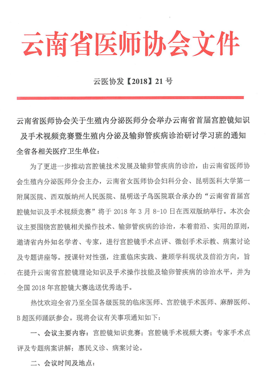 生殖内分泌医师分会举办云南省首届宫腔镜知识及手术视频竞赛暨生殖内分泌及输卵管基本诊治研讨学习班的通知.pdf