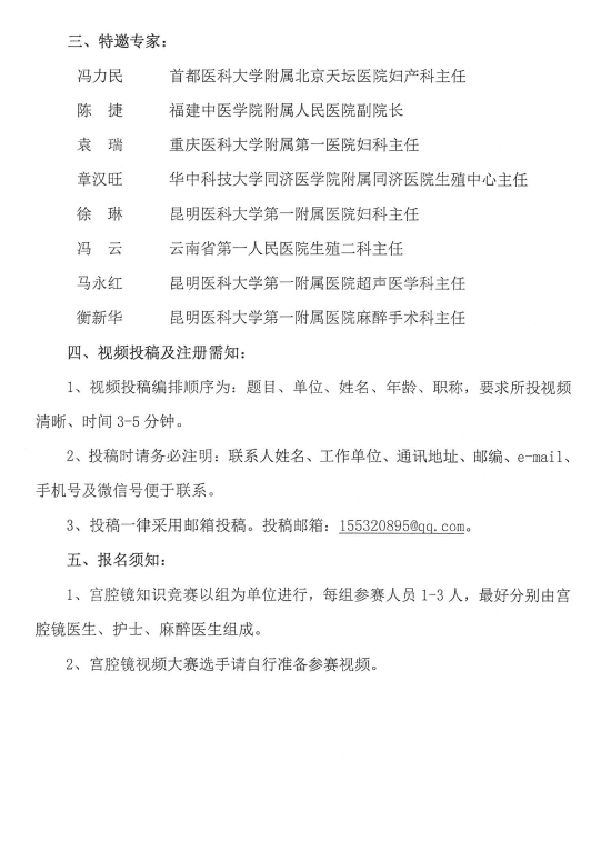 生殖内分泌医师分会举办云南省首届宫腔镜知识及手术视频竞赛的通知