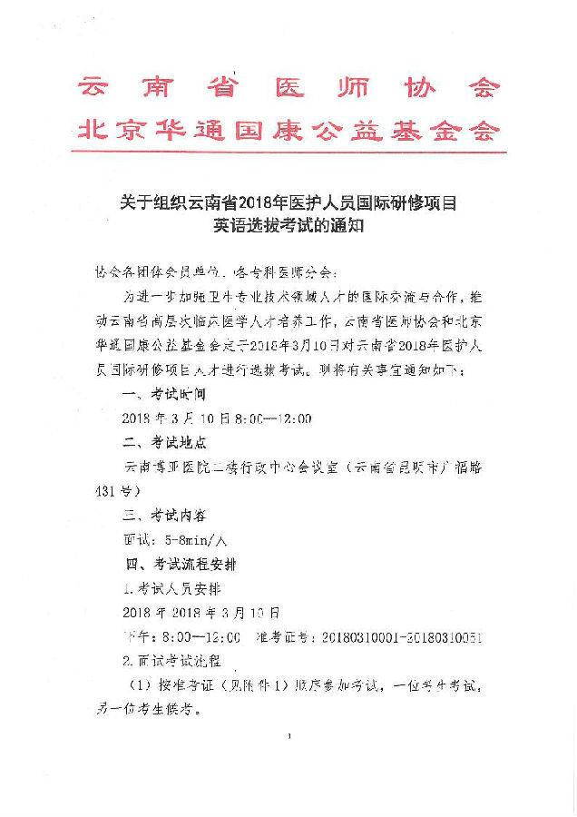 关于组织云南省2018年医护人员国外研修项目英语选拔考试的通知