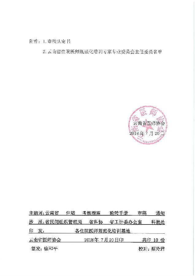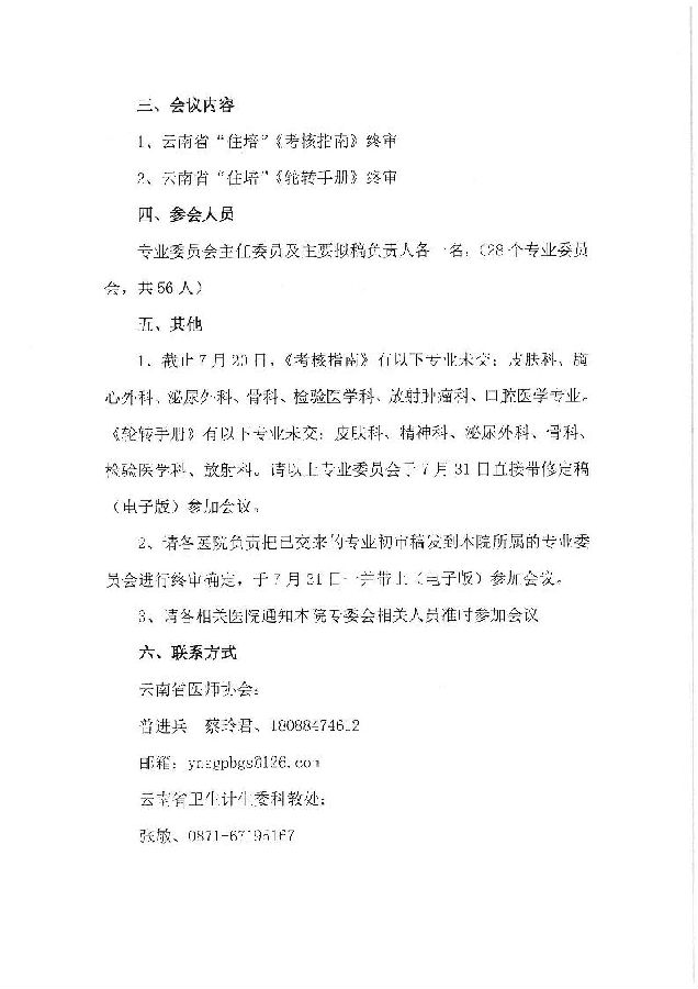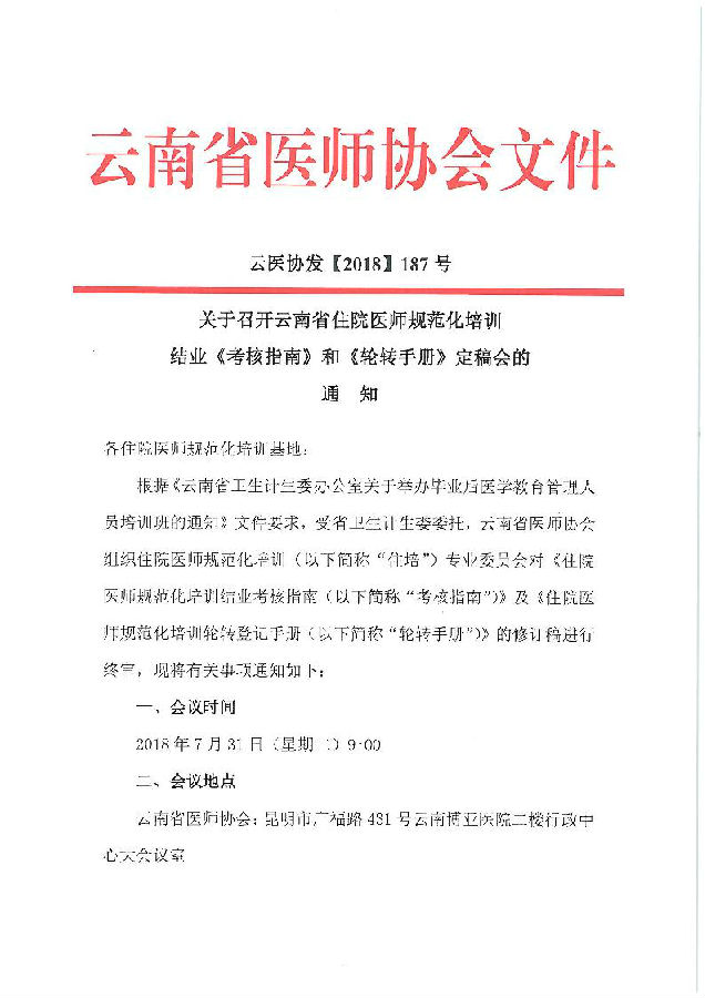 云医协发【2018】187号-关于召开云南省住院医师规范化培训结业考核指南和轮转登记手册定稿会的通知