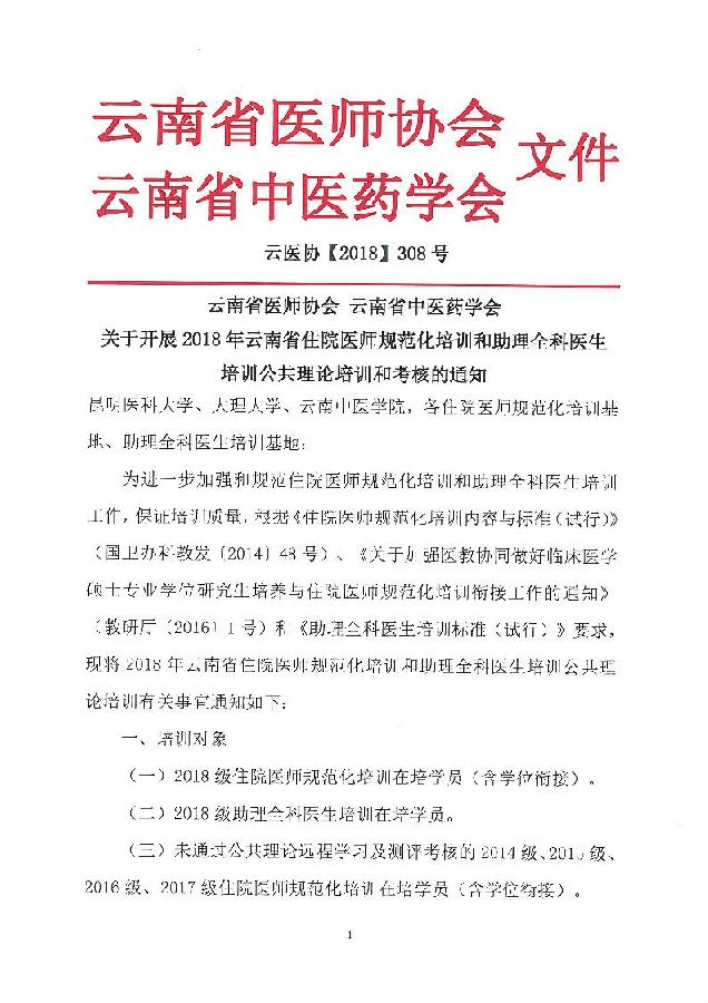 云医协发【2018】308号-省医师协会中医药学会关于开展2018年住培助理全科公共理论课程培训的通知..pdf