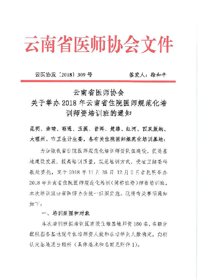 云医协发【2018】309号-云南省医师协会关于举办2018年云南省住院医师规范化培训师资培训班的通知.pdf