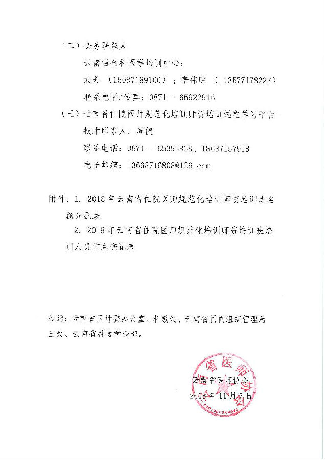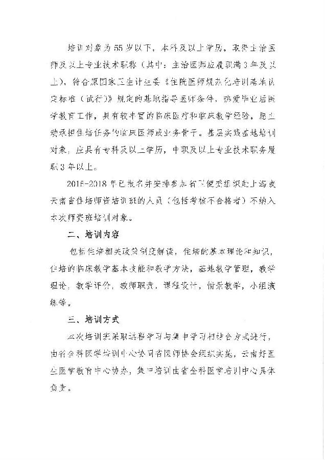 云医协发【2018】309号-云南省医师协会关于举办2018年云南省住院医师规范化培训师资培训班的通知