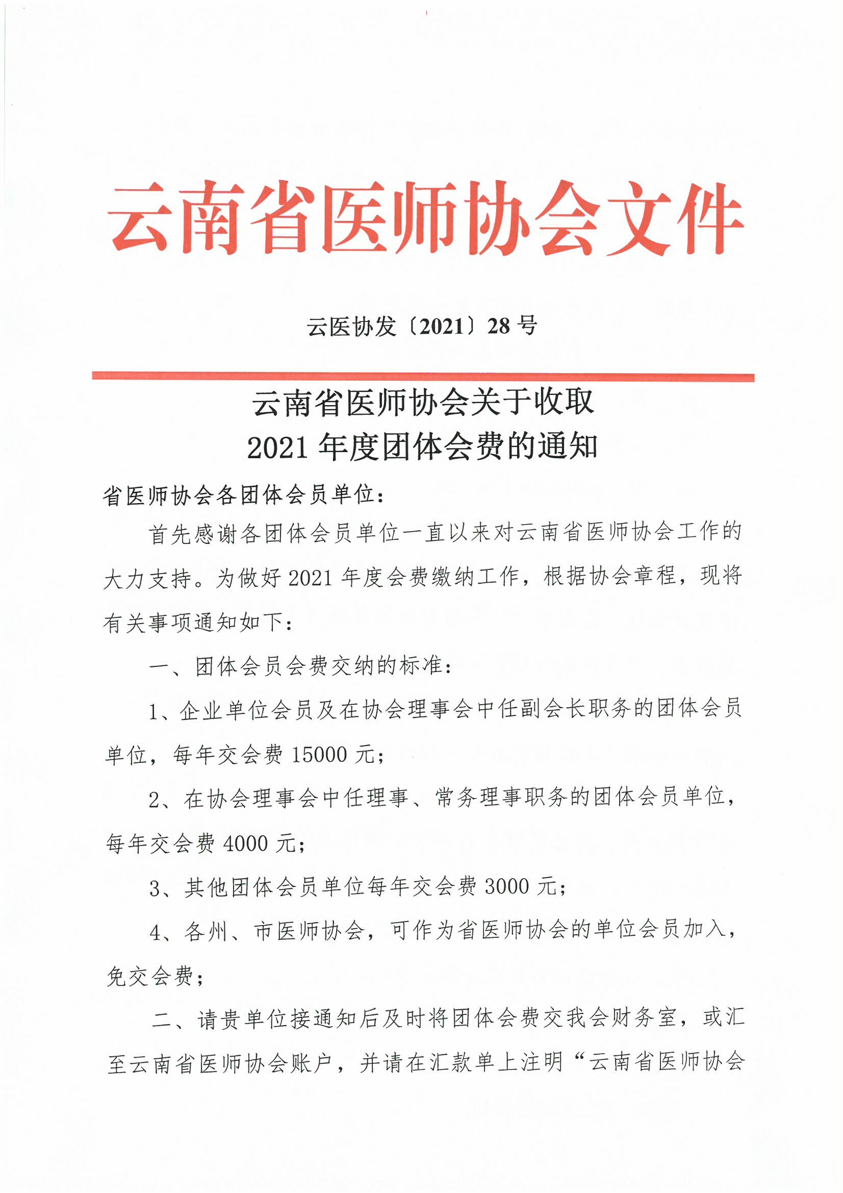 28号-云南省医师协会关于收取2021年度团体会费的通知