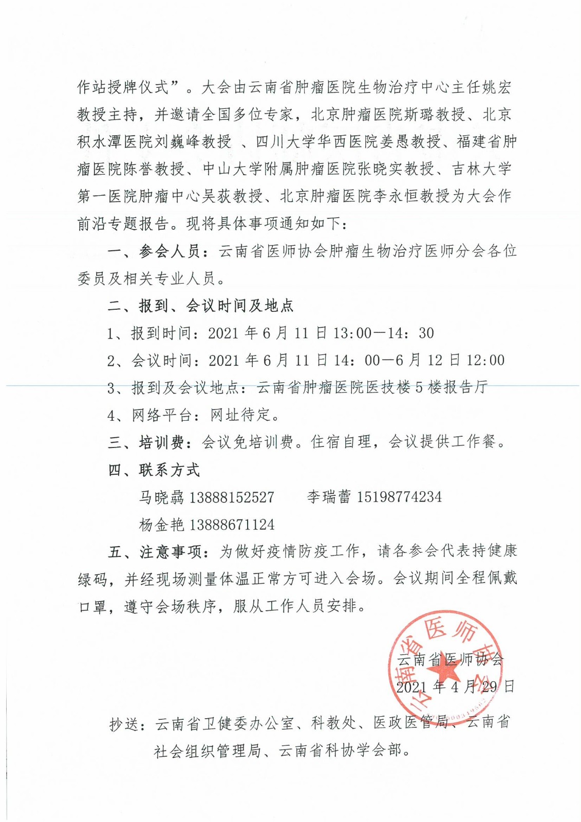 45号-云南省医师协会关于召开呼吸科医师分会2021年年会暨呼吸疾病诊治技术新进展学习班、呼吸科专科护士培训班的通知