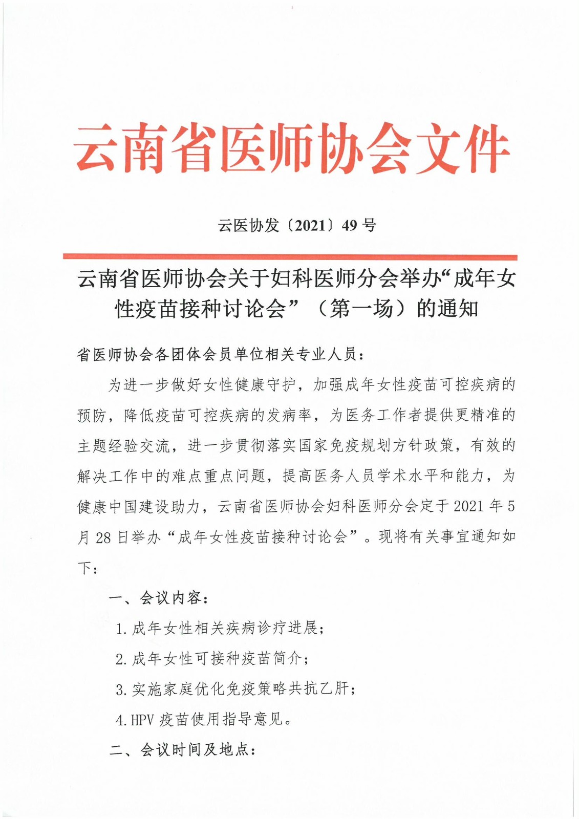 49号-云南省医师协会关于妇科医师分会举办“成年女性疫苗接种讨论会”(第一场)的通知