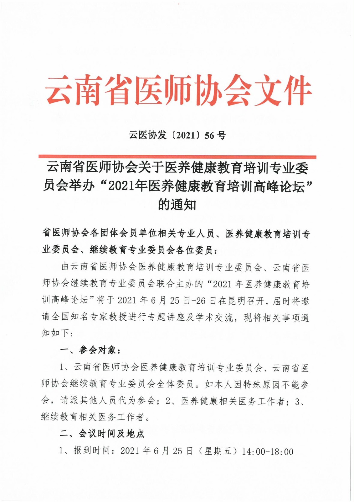 56号红头-云南省医师协会医养健康教育培训专业委员会关于召开“2021年医养健康教育培训高峰论坛”的通知(1).pdf