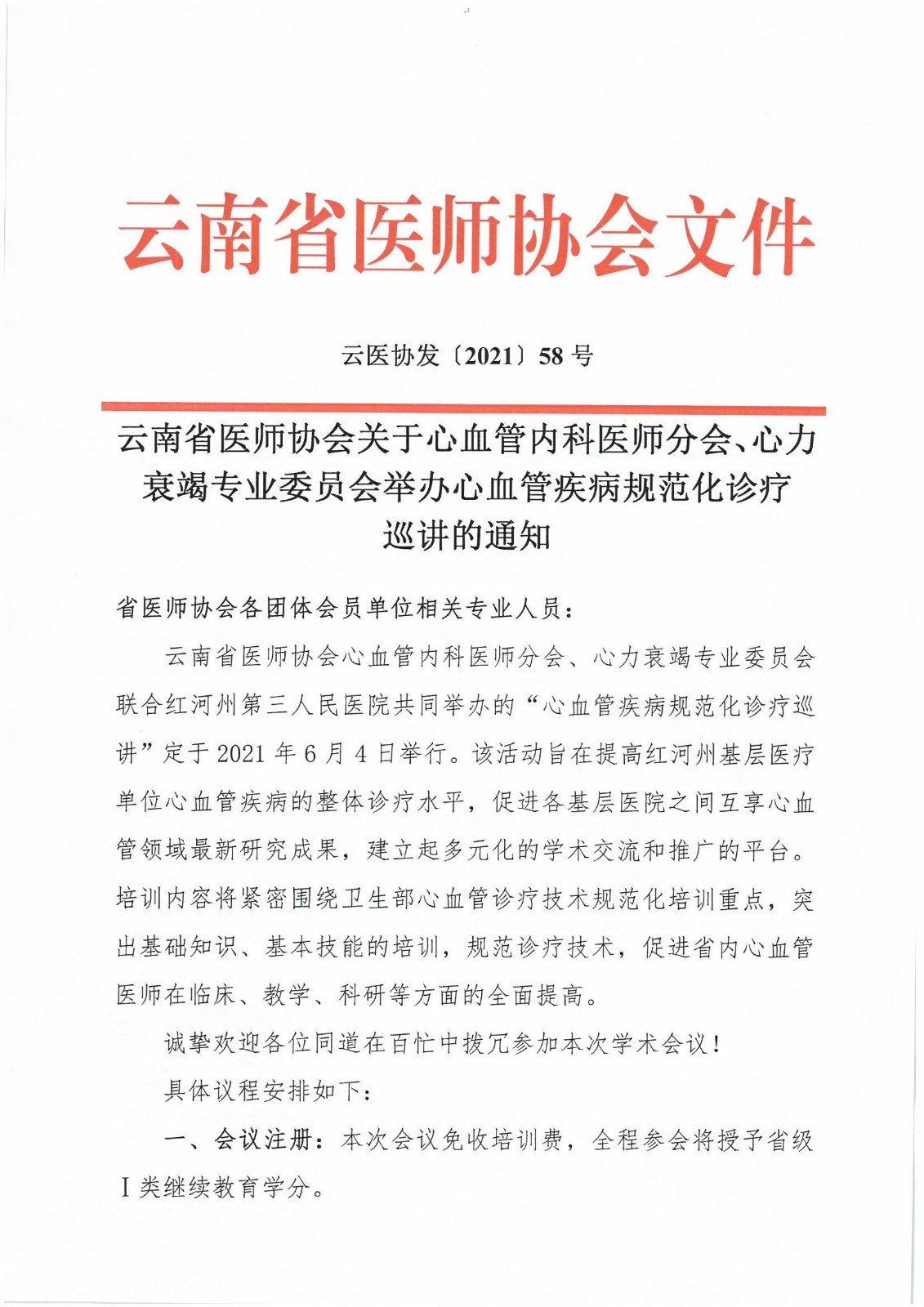 58号-红头-云南省医师协会关于心血管内科医师分会、心力衰竭专业委员会举办心血管疾病规范化诊疗巡讲的通知.pdf