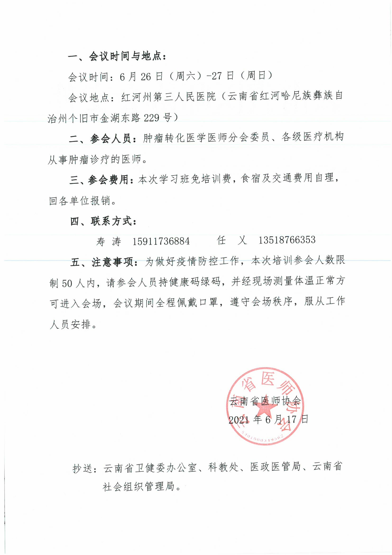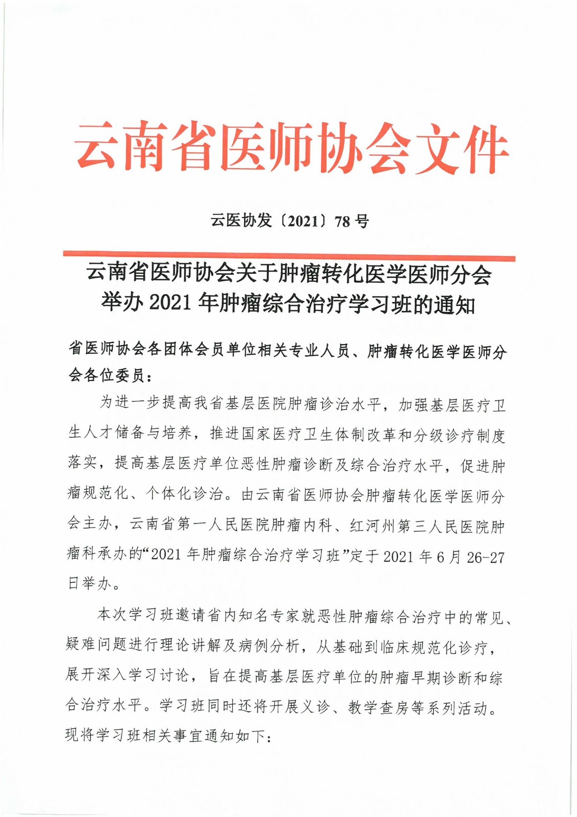 78号红头-云南省医师协会关于肿瘤转化医学医师分会举办2021年肿瘤综合治疗学习班的通知.pdf
