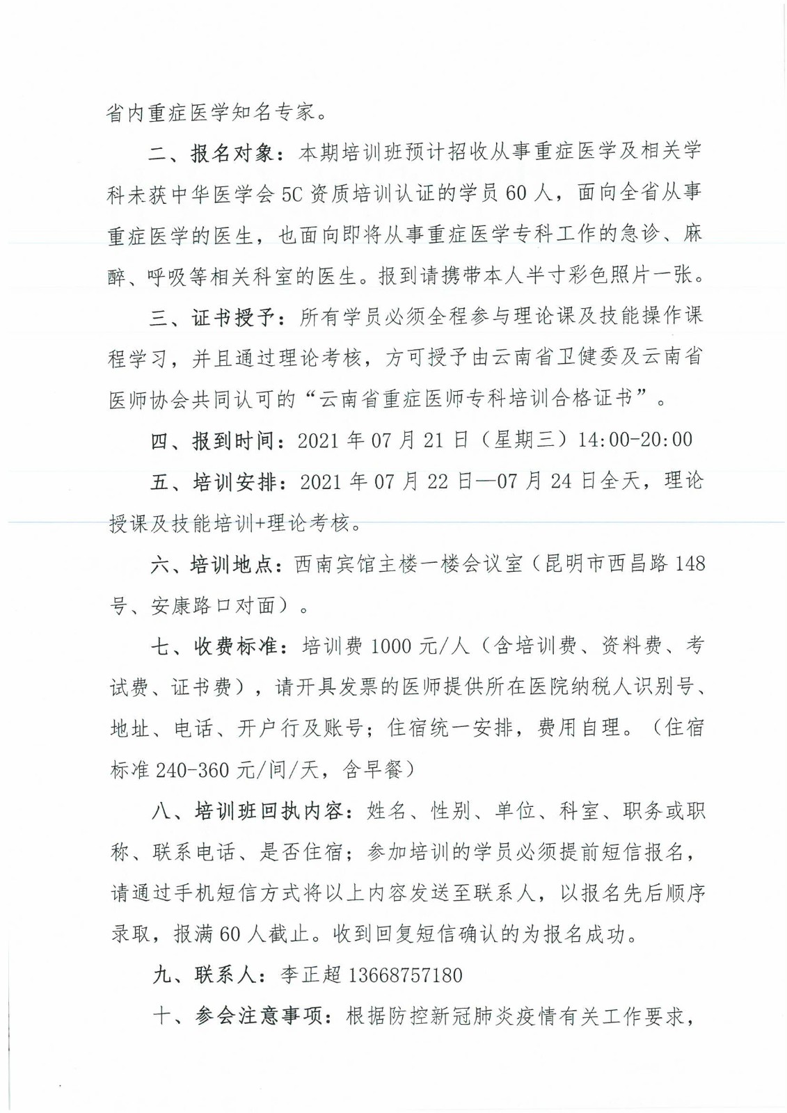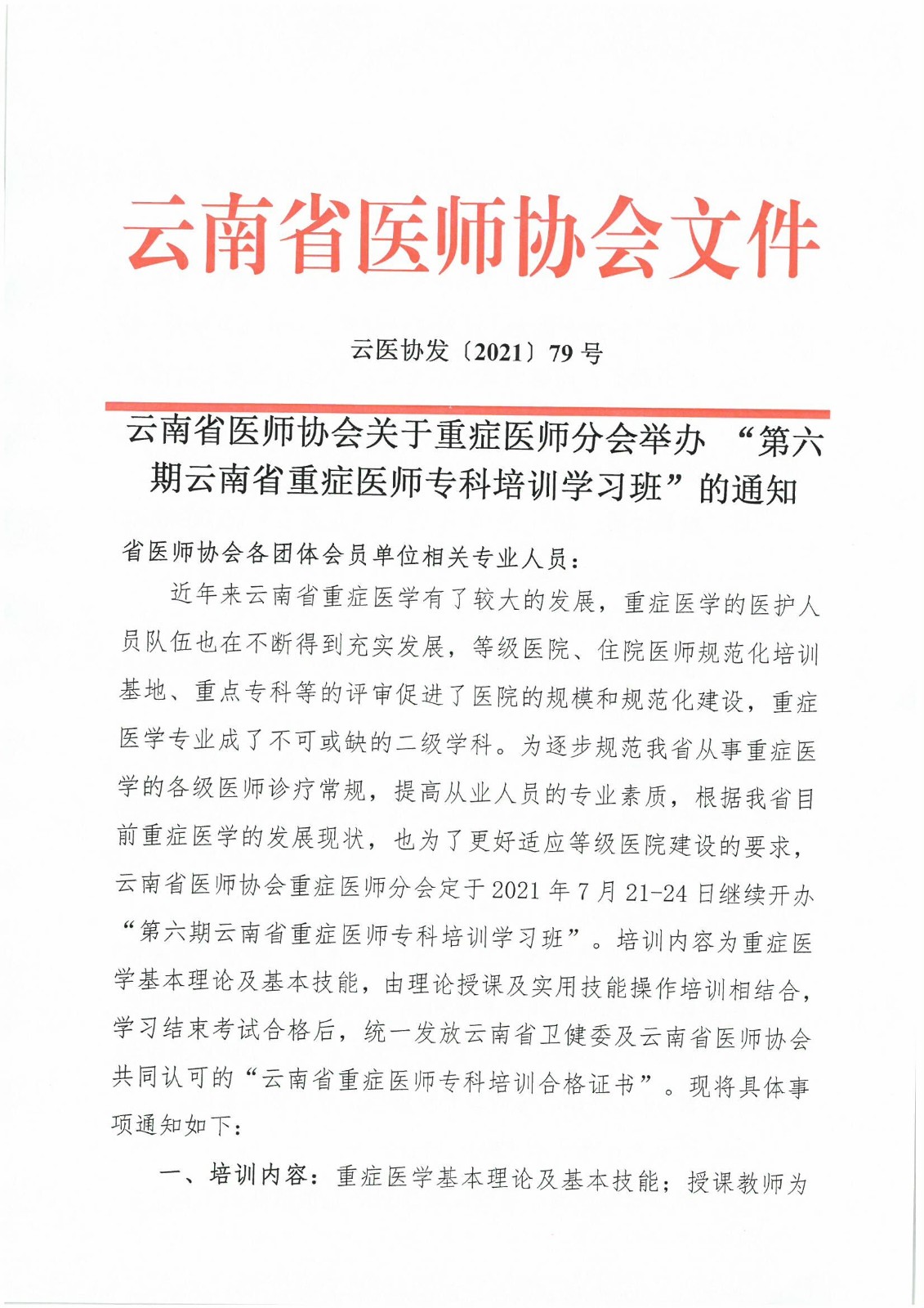 79号红头-云南省医师协会关于重症医师分会举办 “第六期云南省重症医师专科培训学习班”的通知.pdf