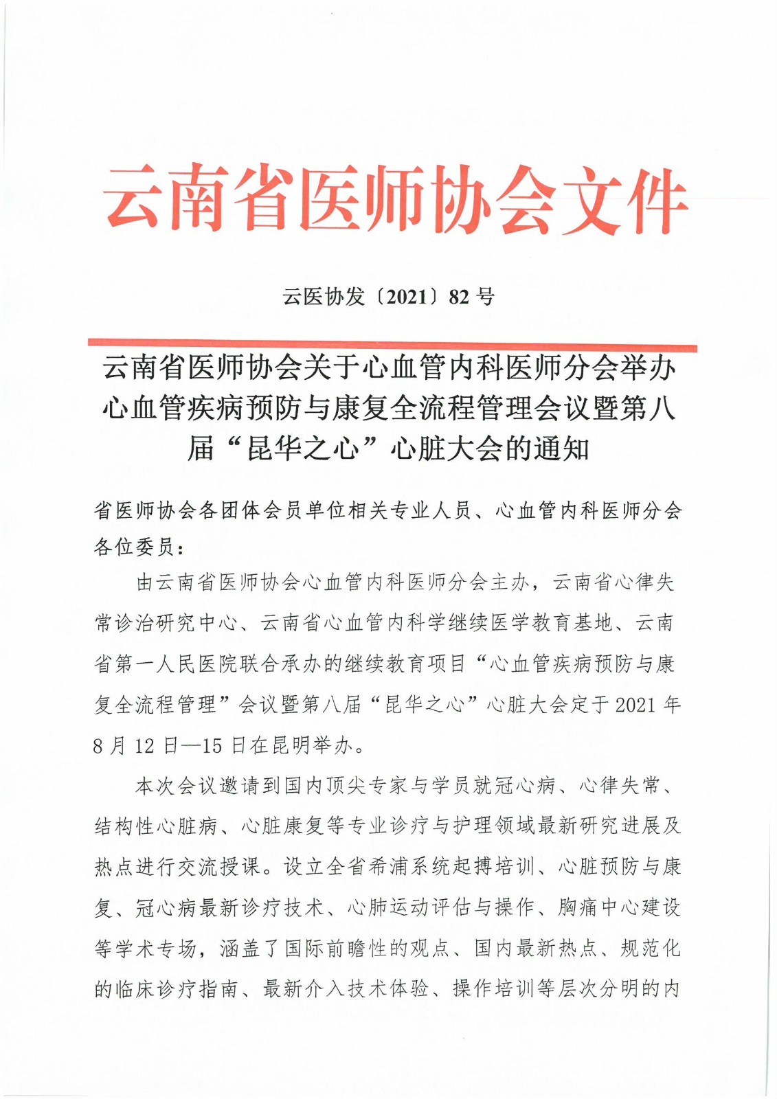 82号红头-云南省医师协会关于心血管内科医师分会举办心血管疾病预防与康复全流程管理会议暨第八届“昆华之心”心脏大会的通知.pdf