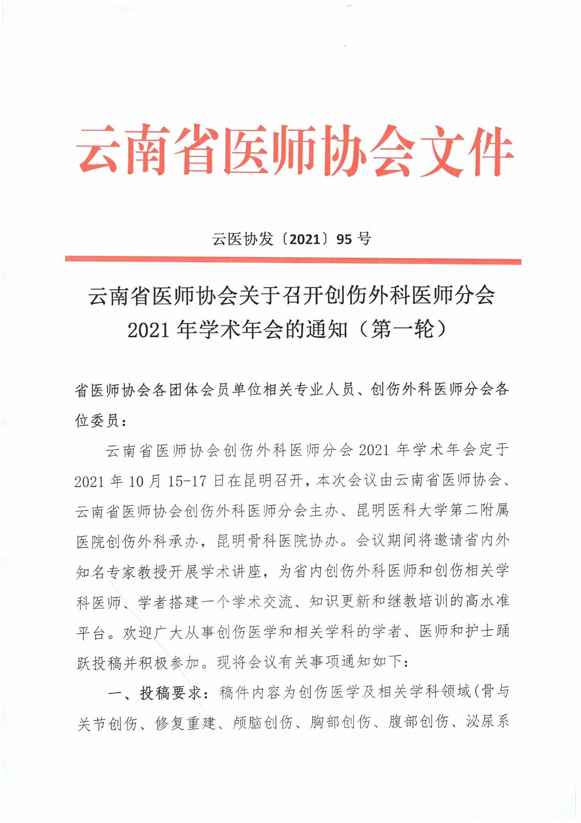95号红头-云南省医师协会关于召开创伤外科医师分会2021年学术年会的通知(第一轮).pdf