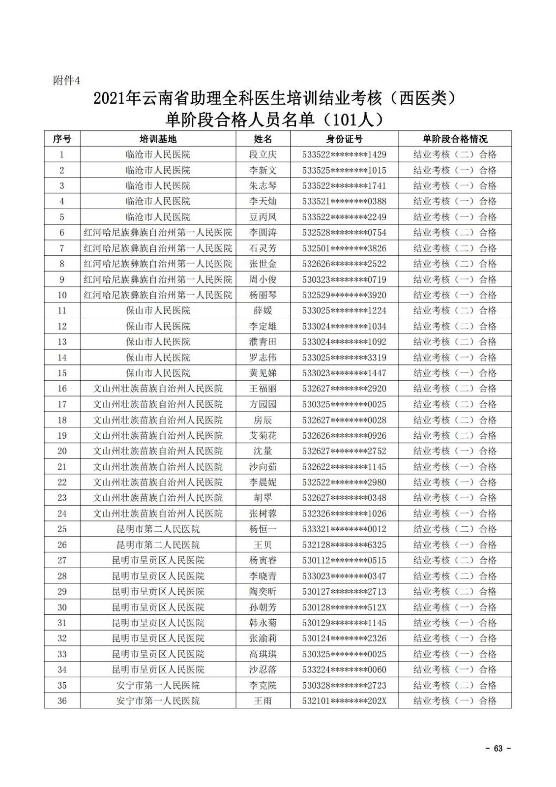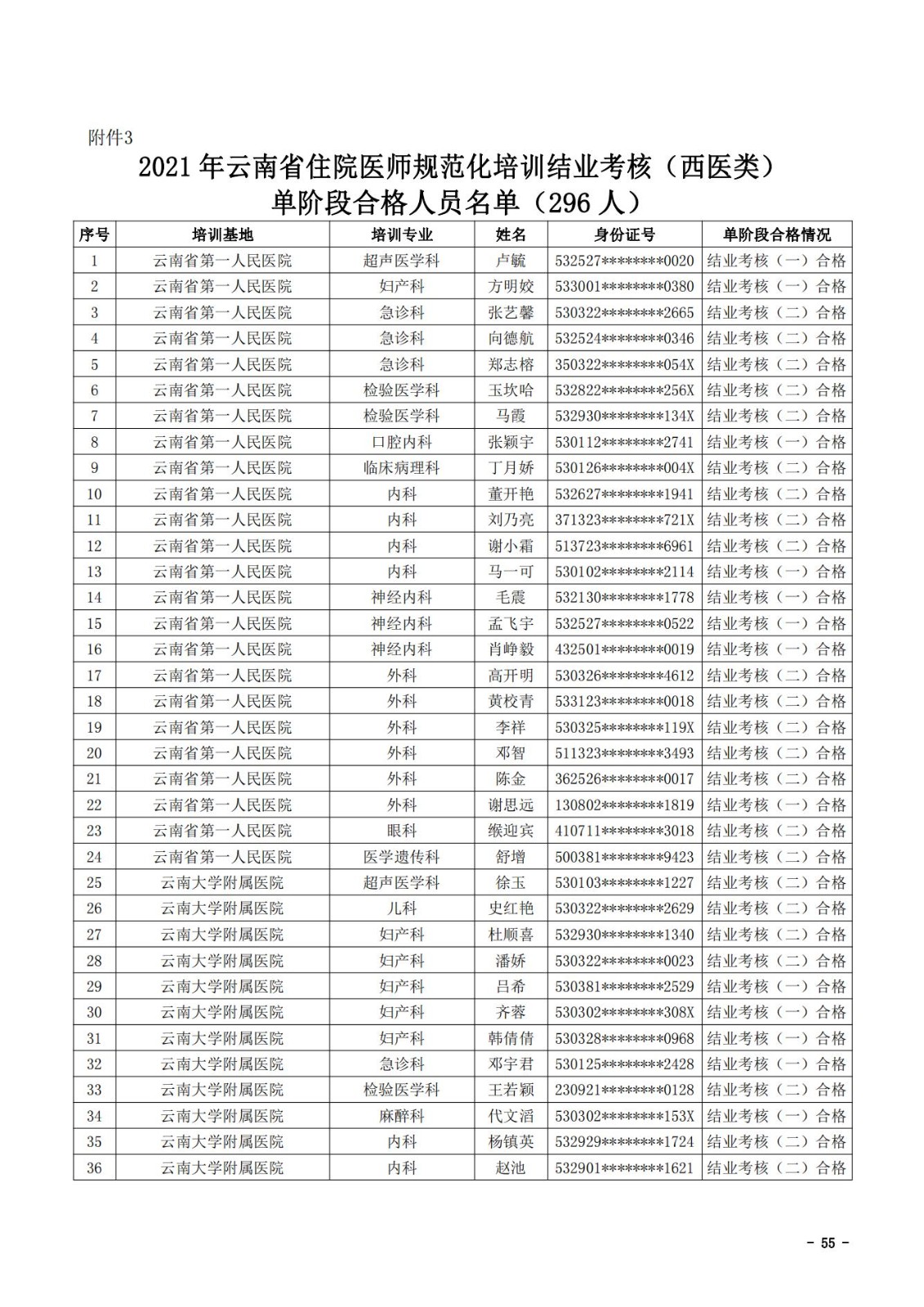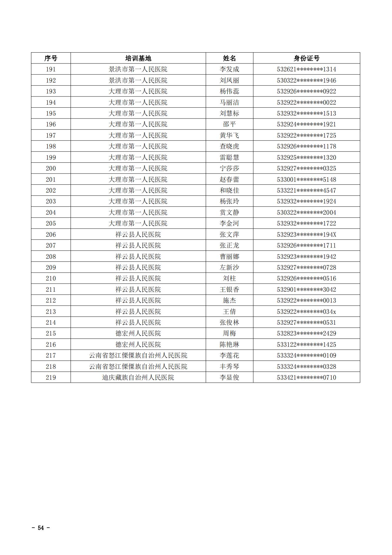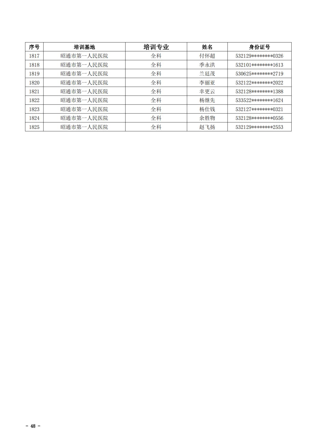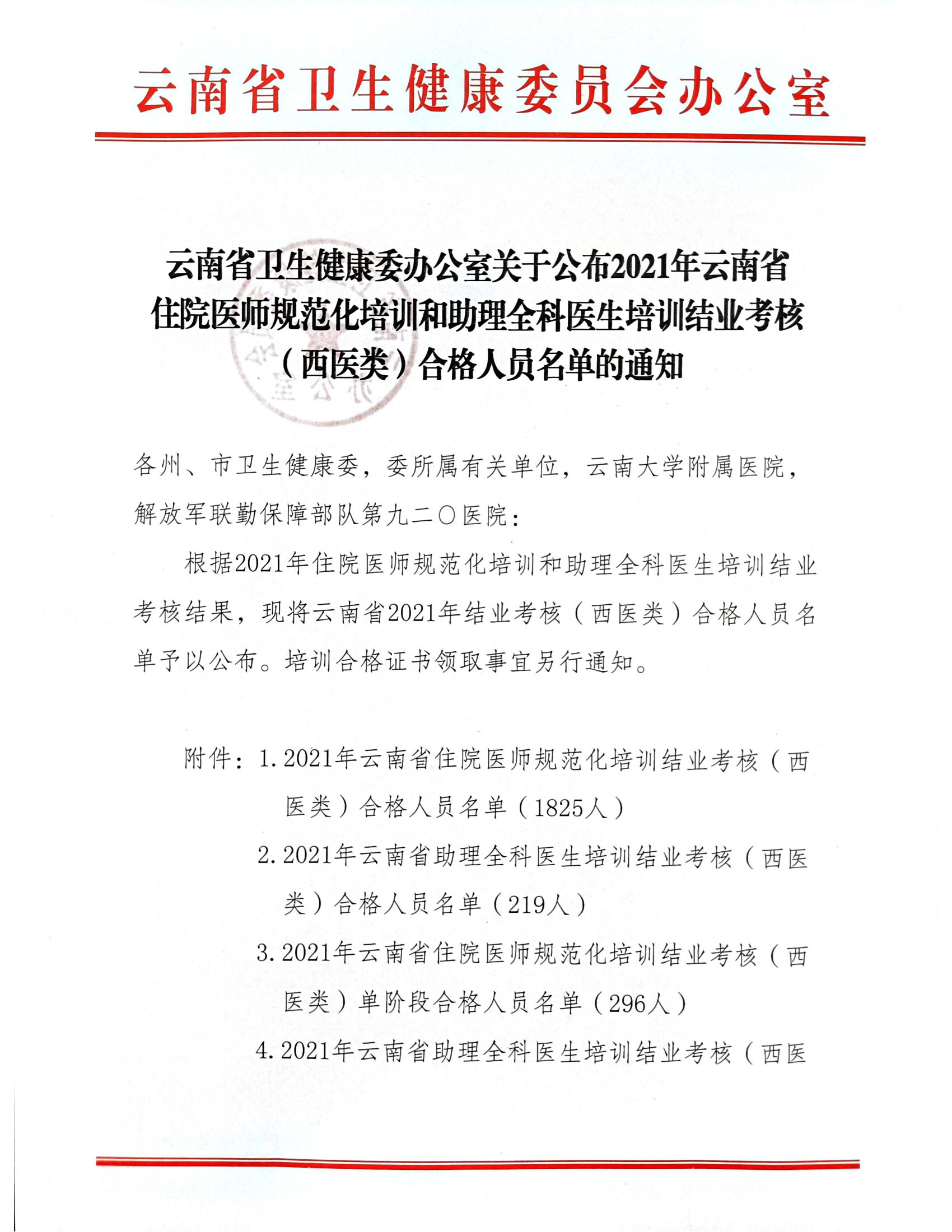 2021年云南省住院医师规范化培训和助理全科医生培训结业考核(西医类)合格人员名单