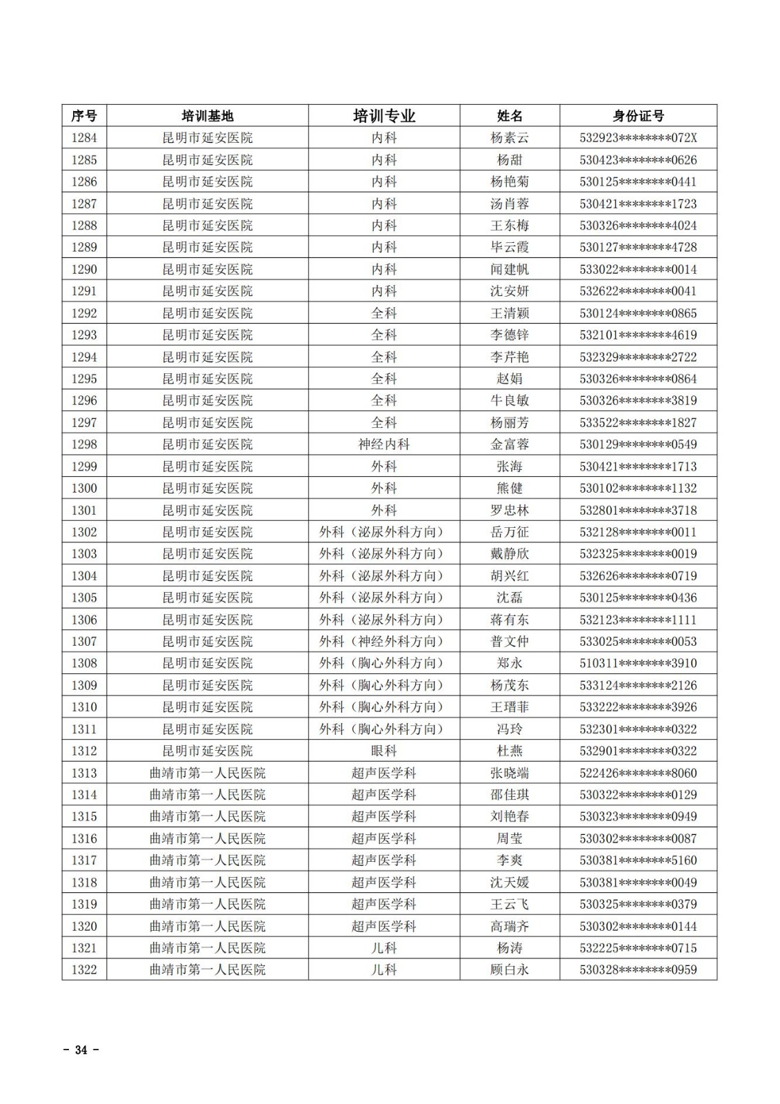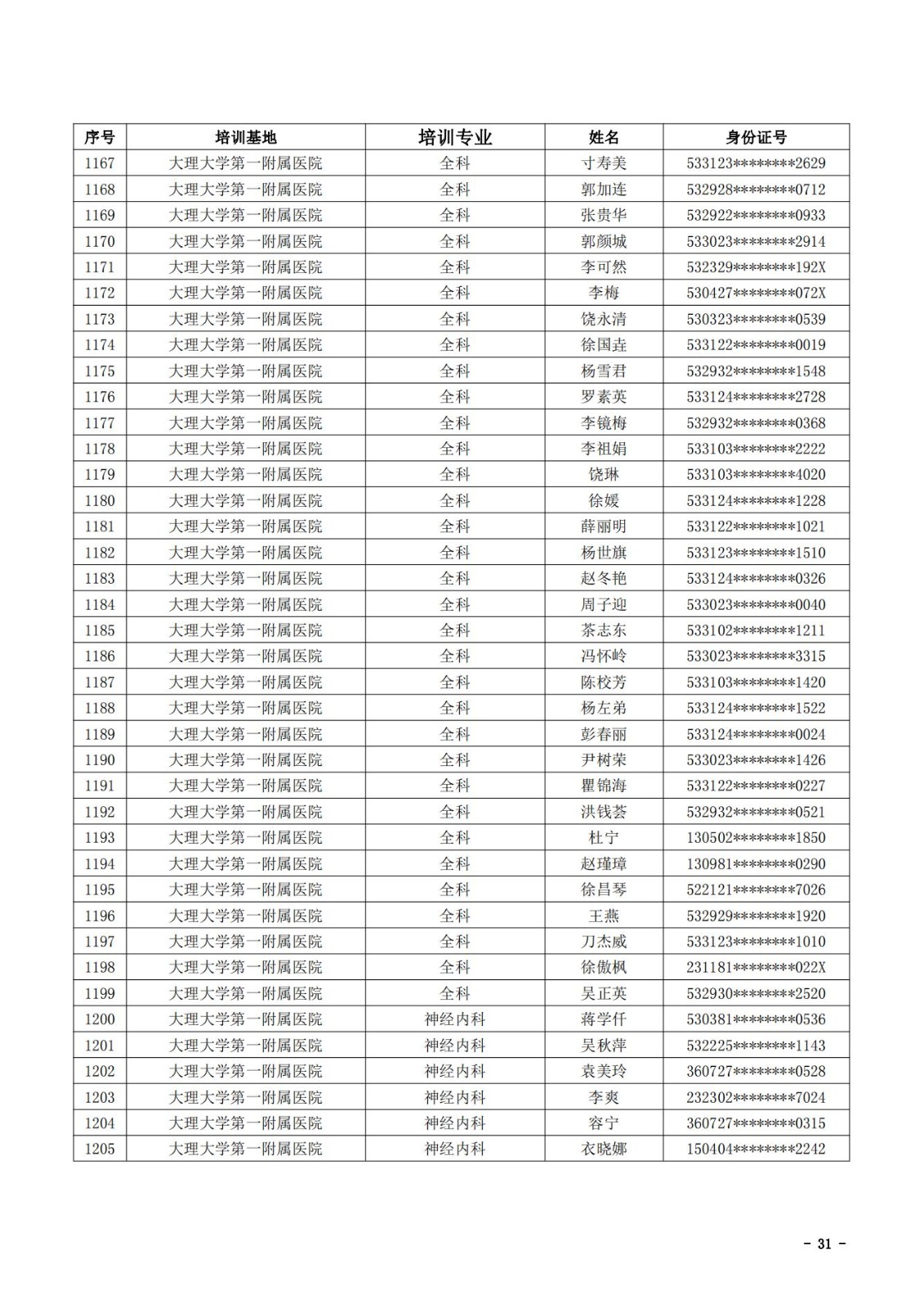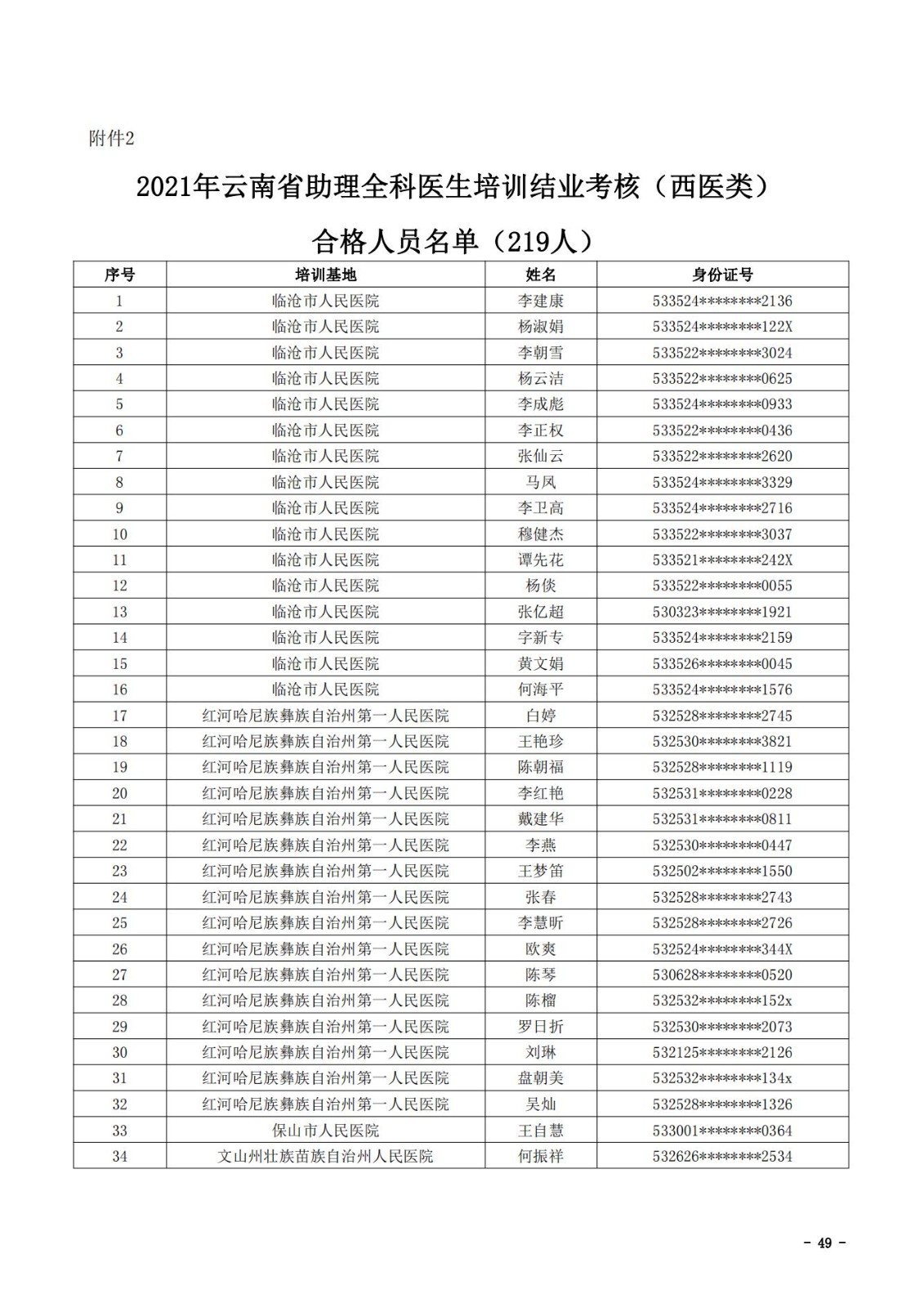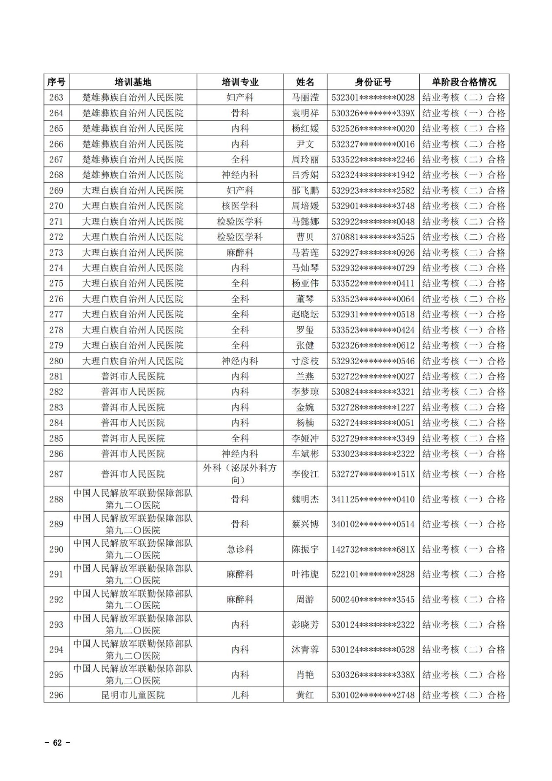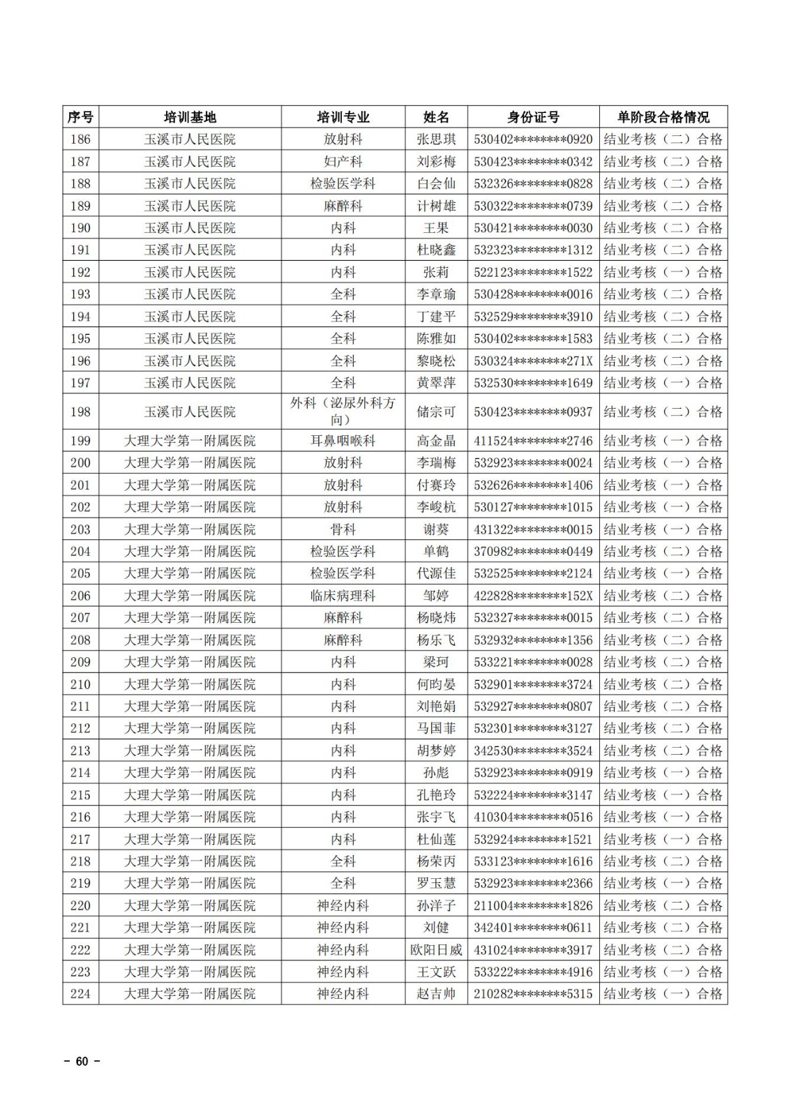 2021年云南省住院医师规范化培训和助理全科医生培训结业考核(西医类)合格人员名单