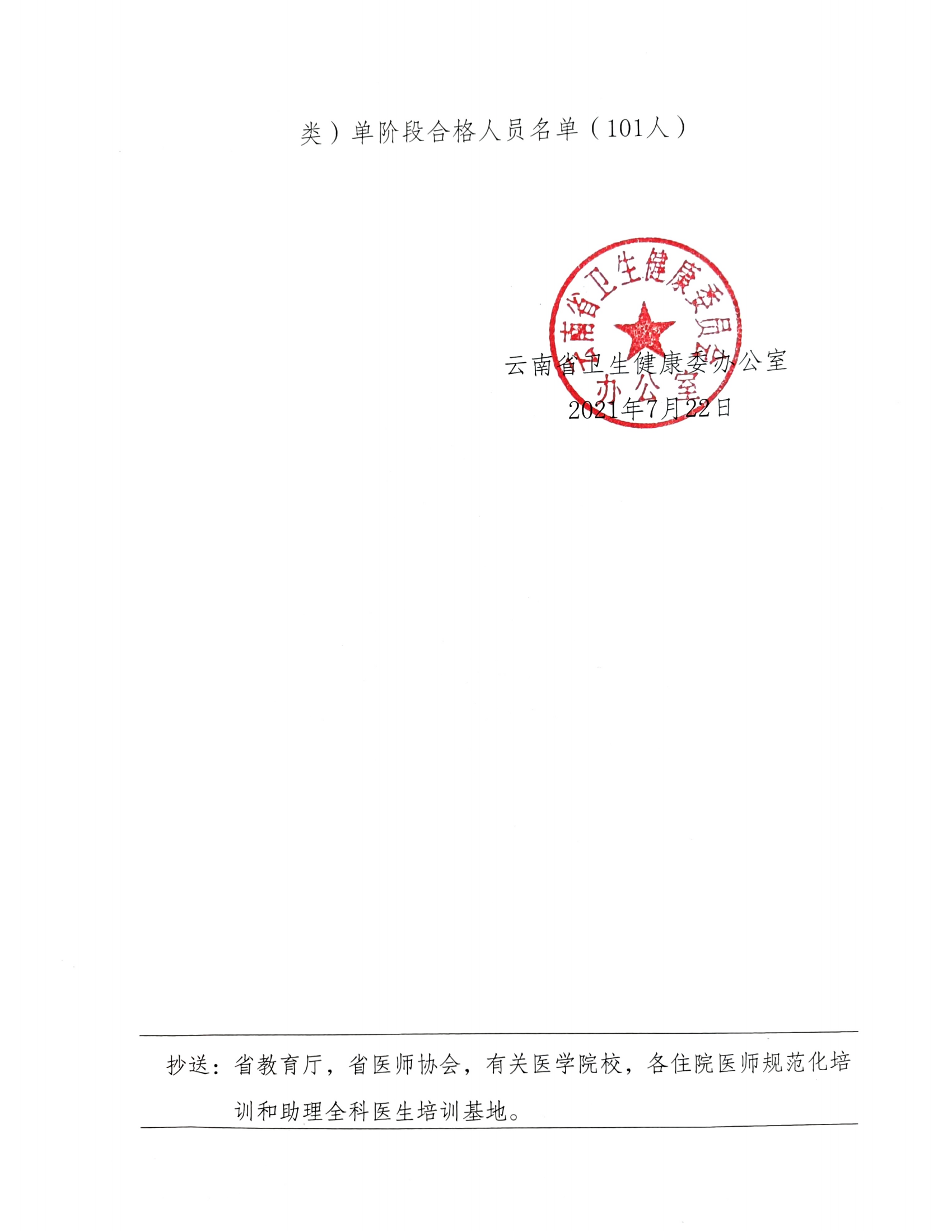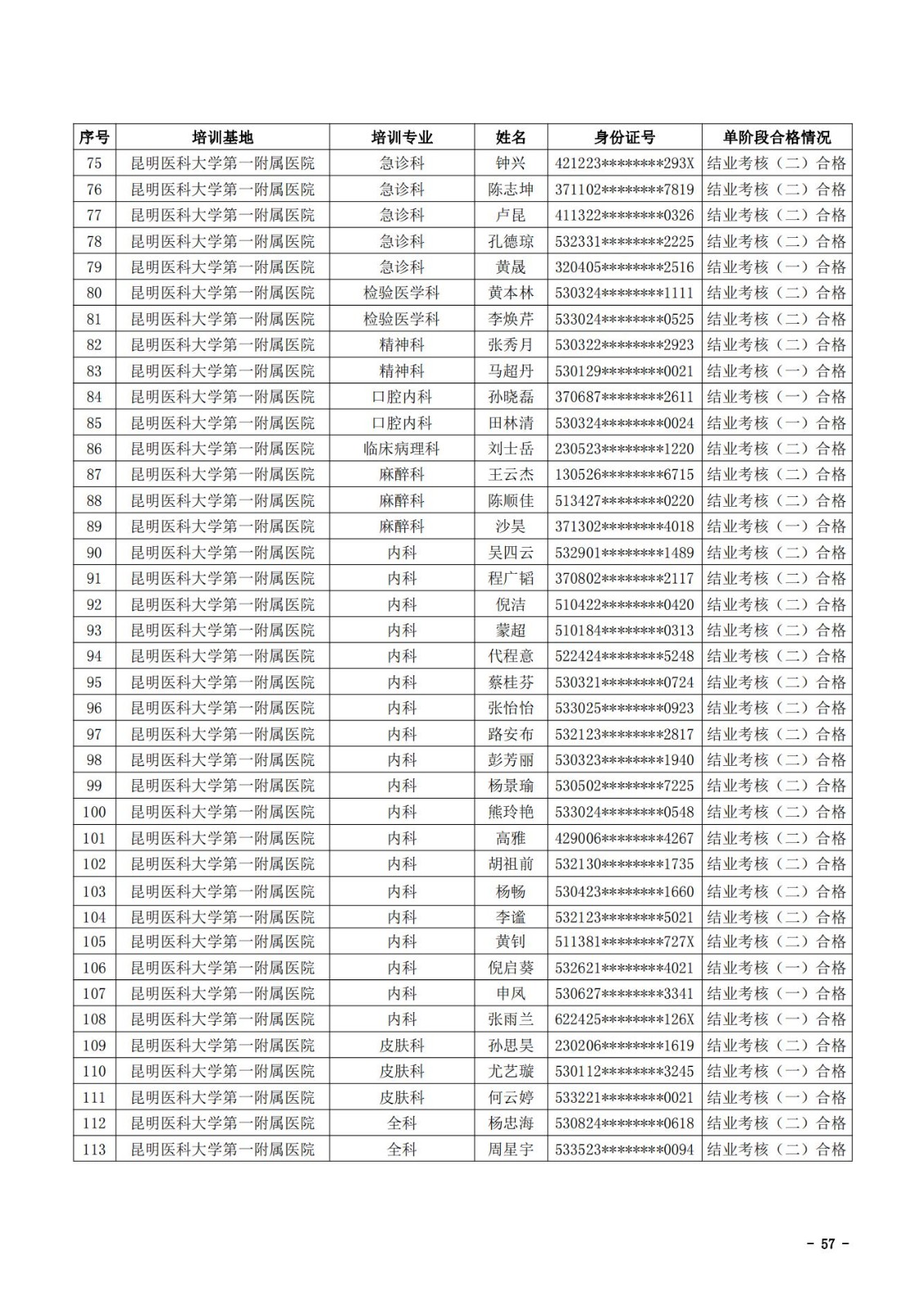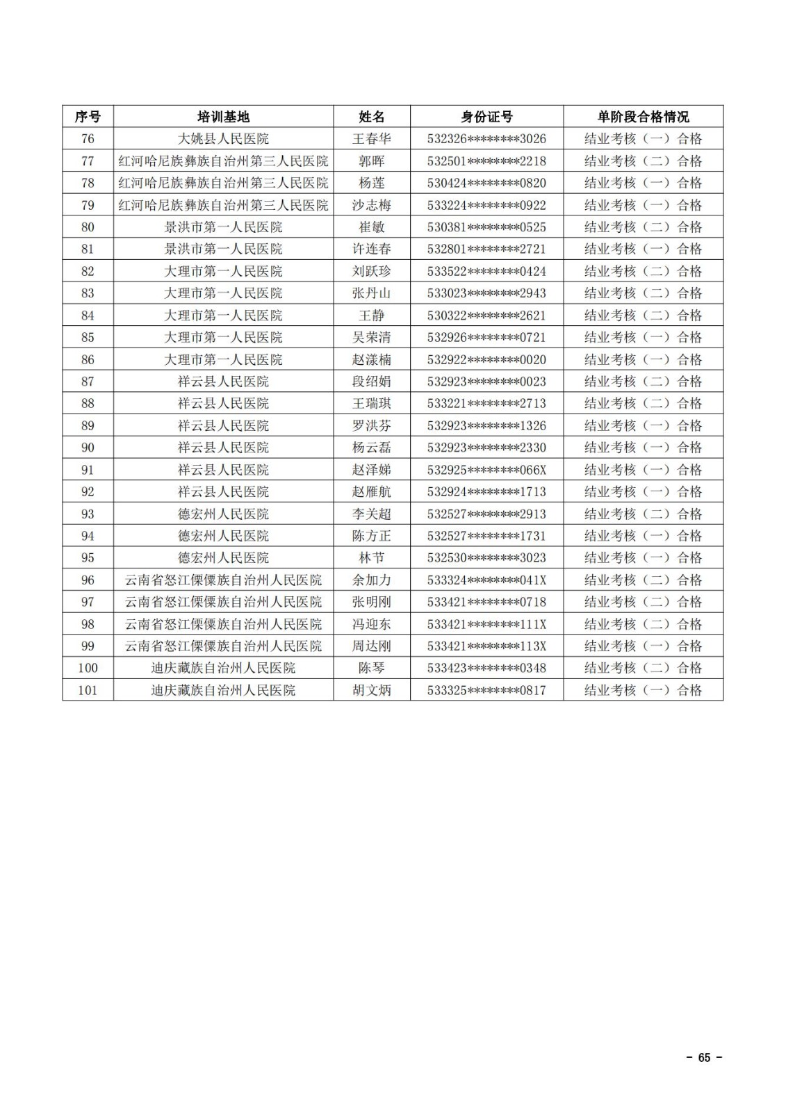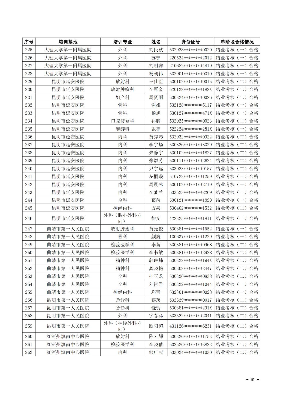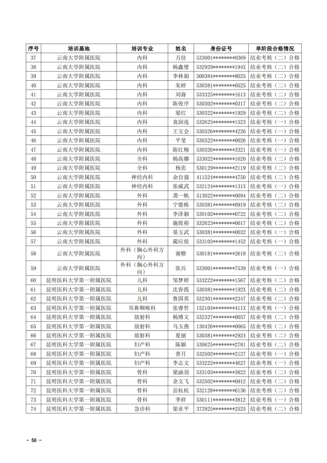 2021年云南省住院医师规范化培训和助理全科医生培训结业考核(西医类)合格人员名单