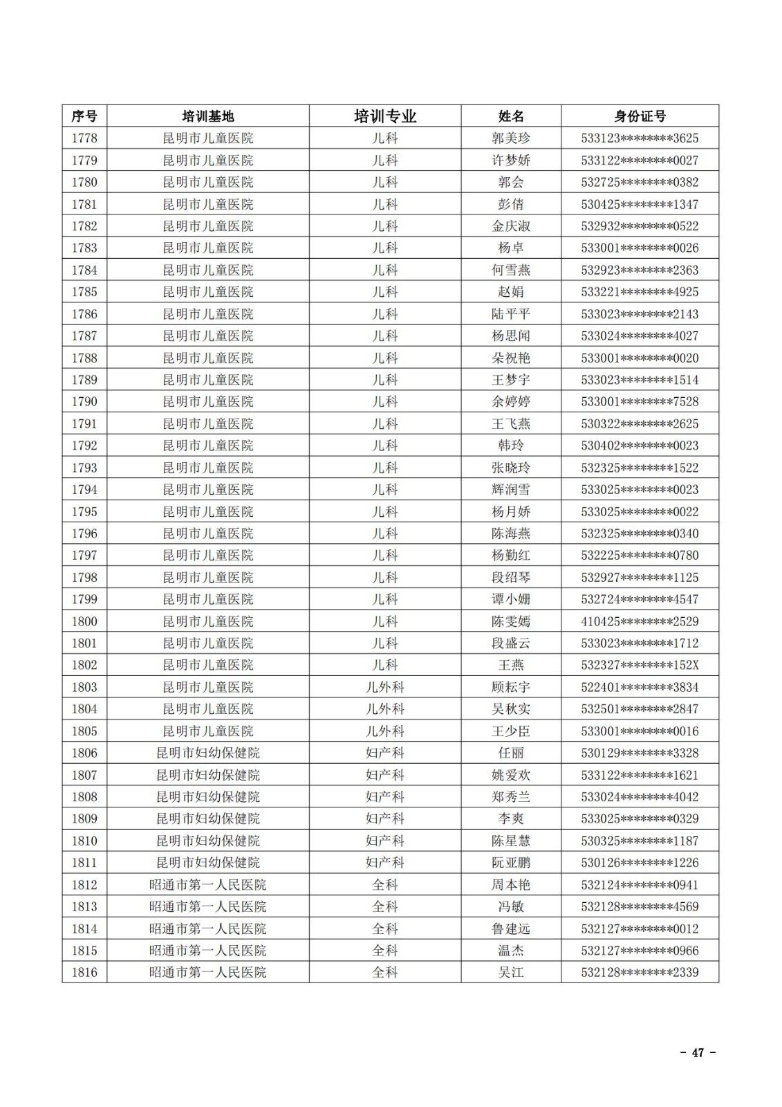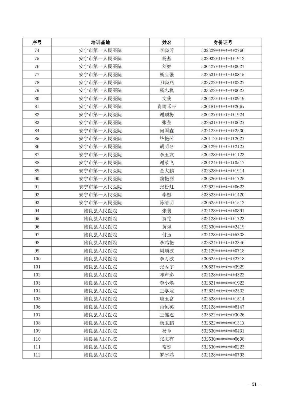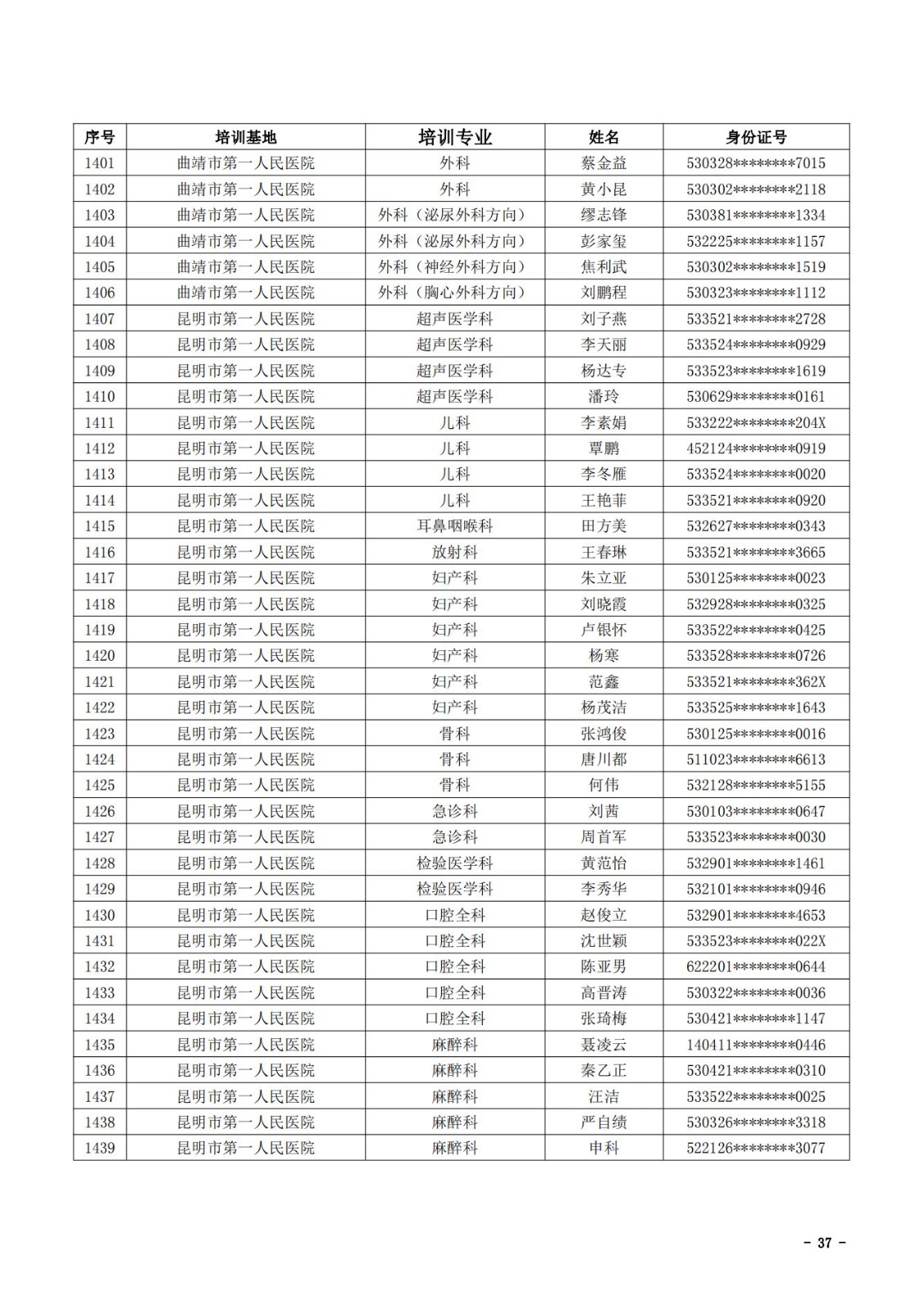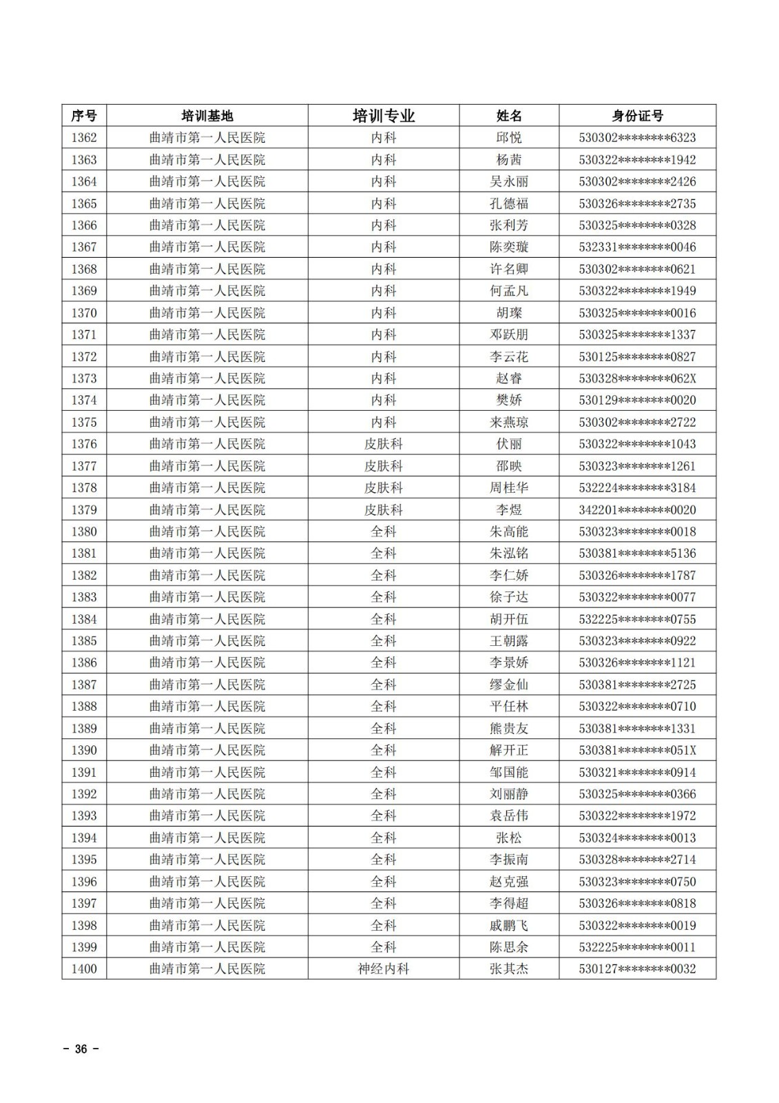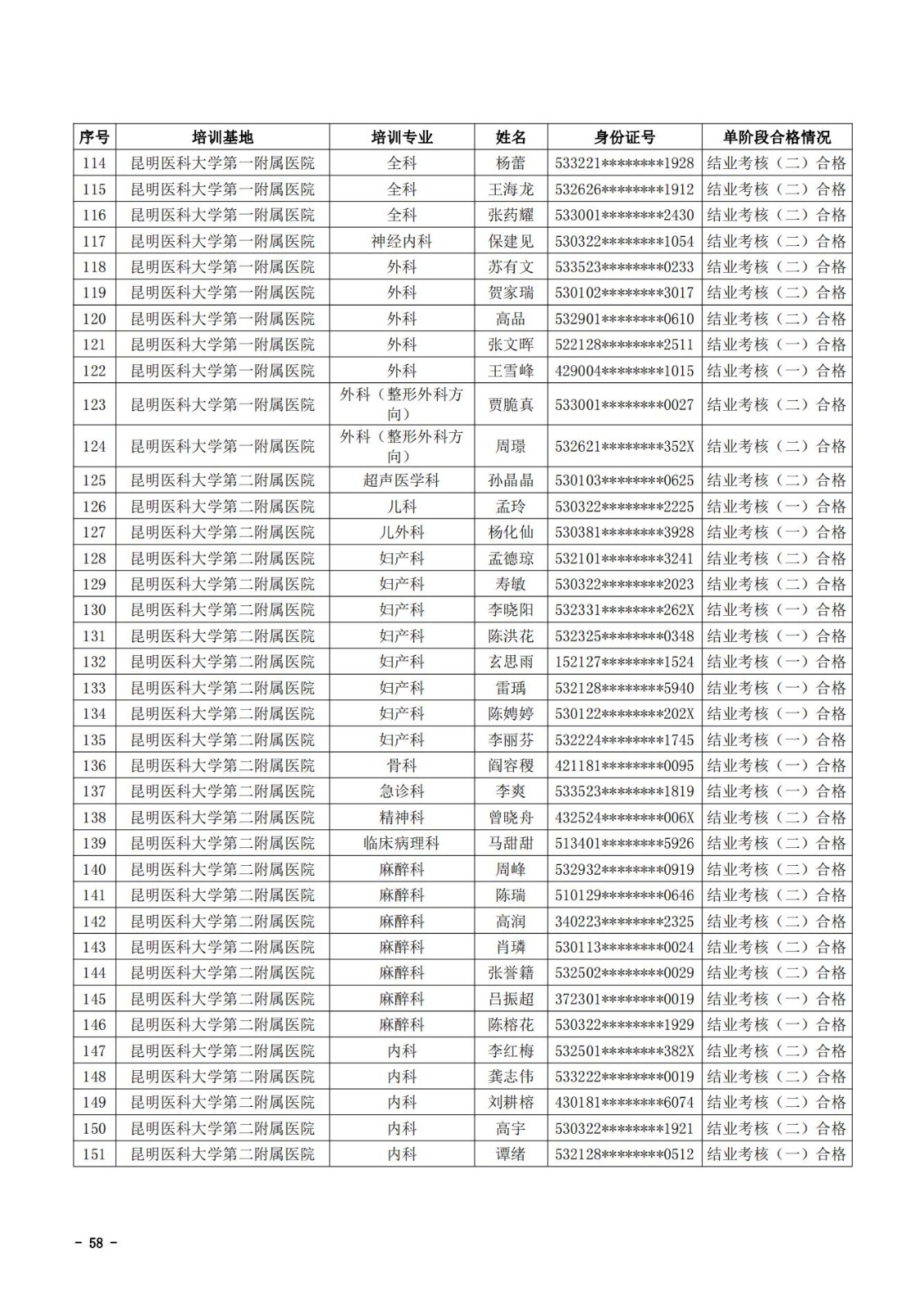 2021年云南省住院医师规范化培训和助理全科医生培训结业考核(西医类)合格人员名单
