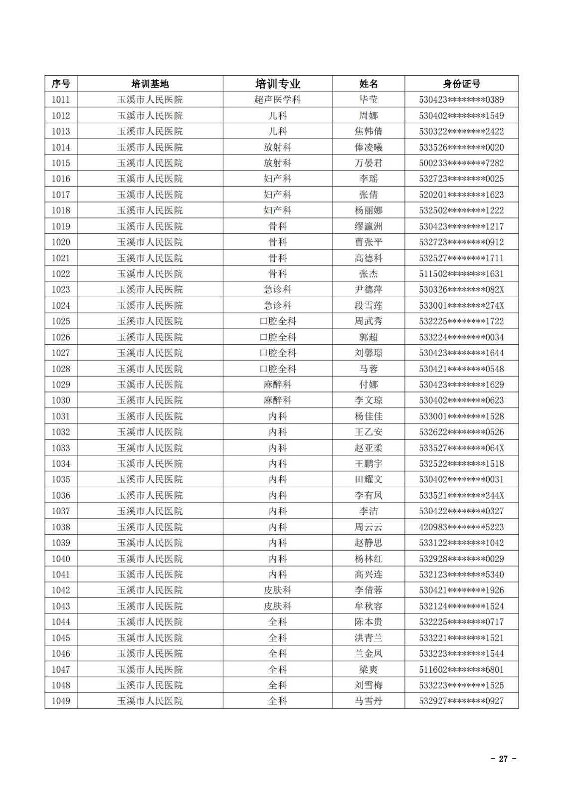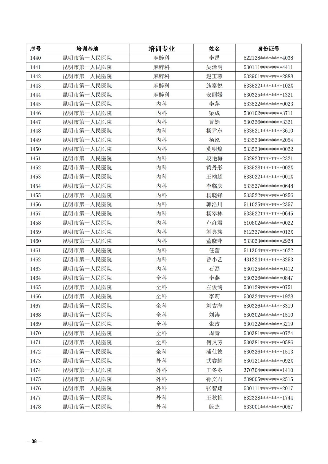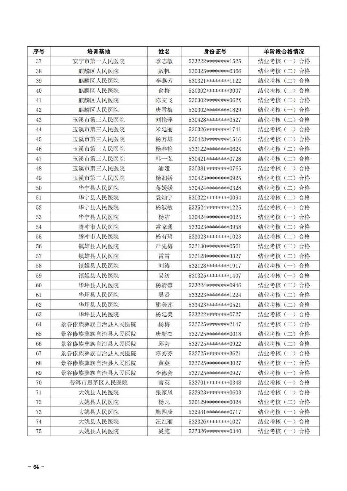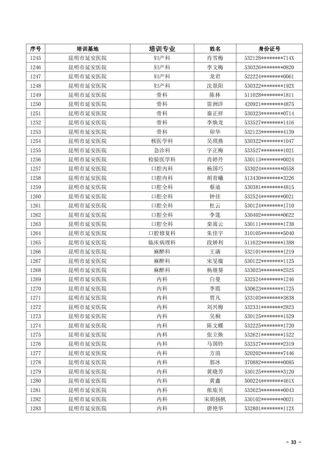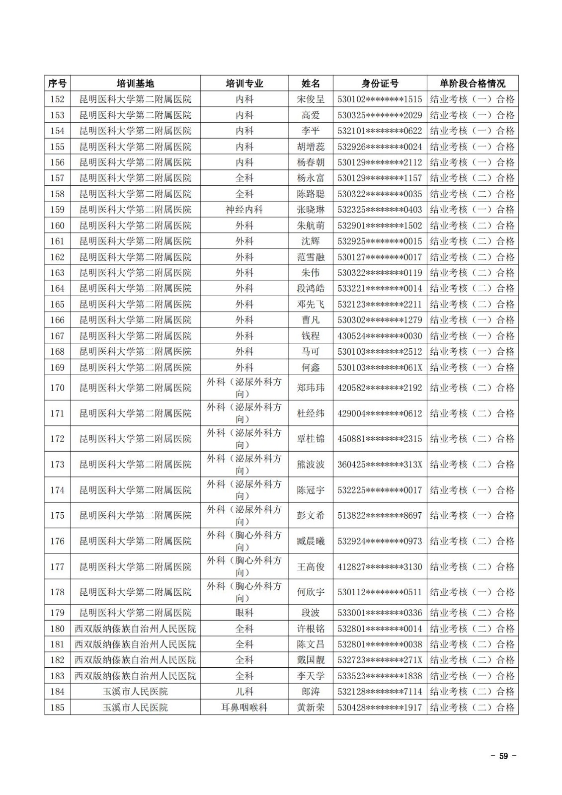 2021年云南省住院医师规范化培训和助理全科医生培训结业考核(西医类)合格人员名单