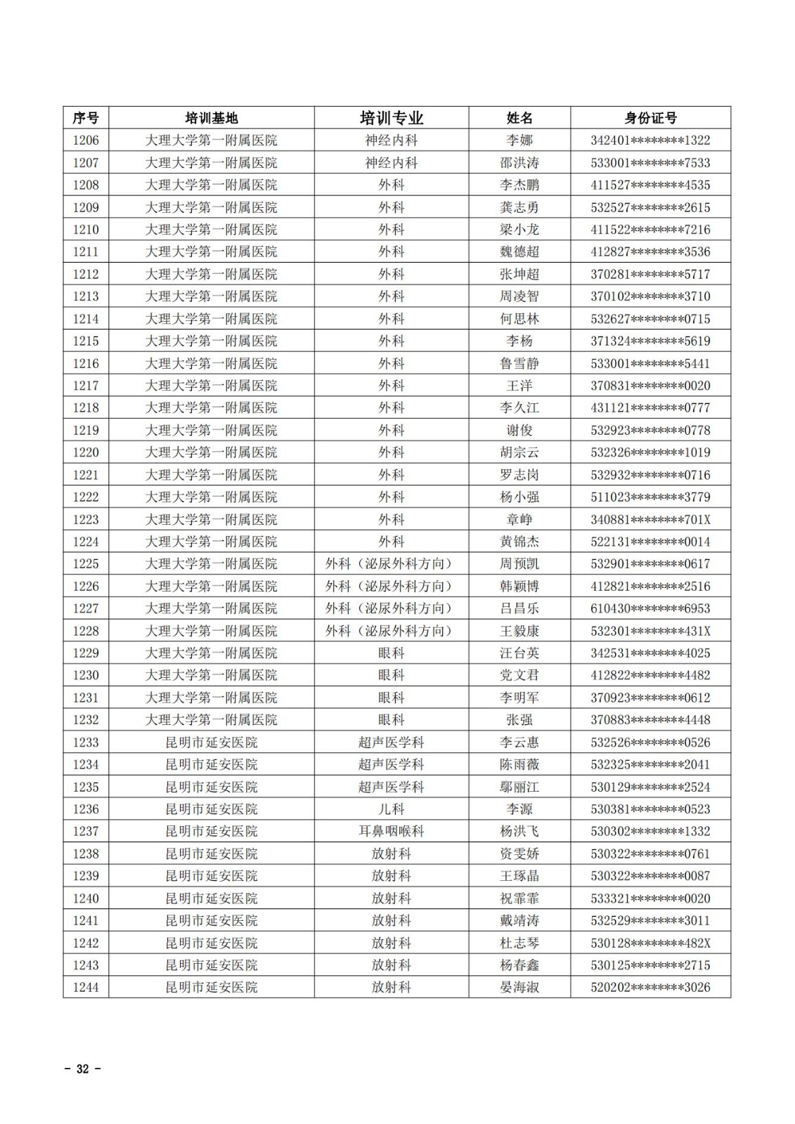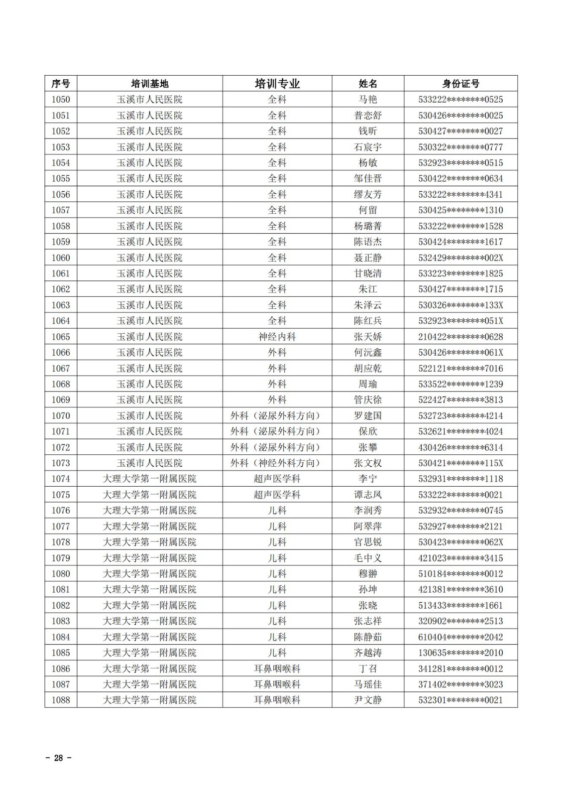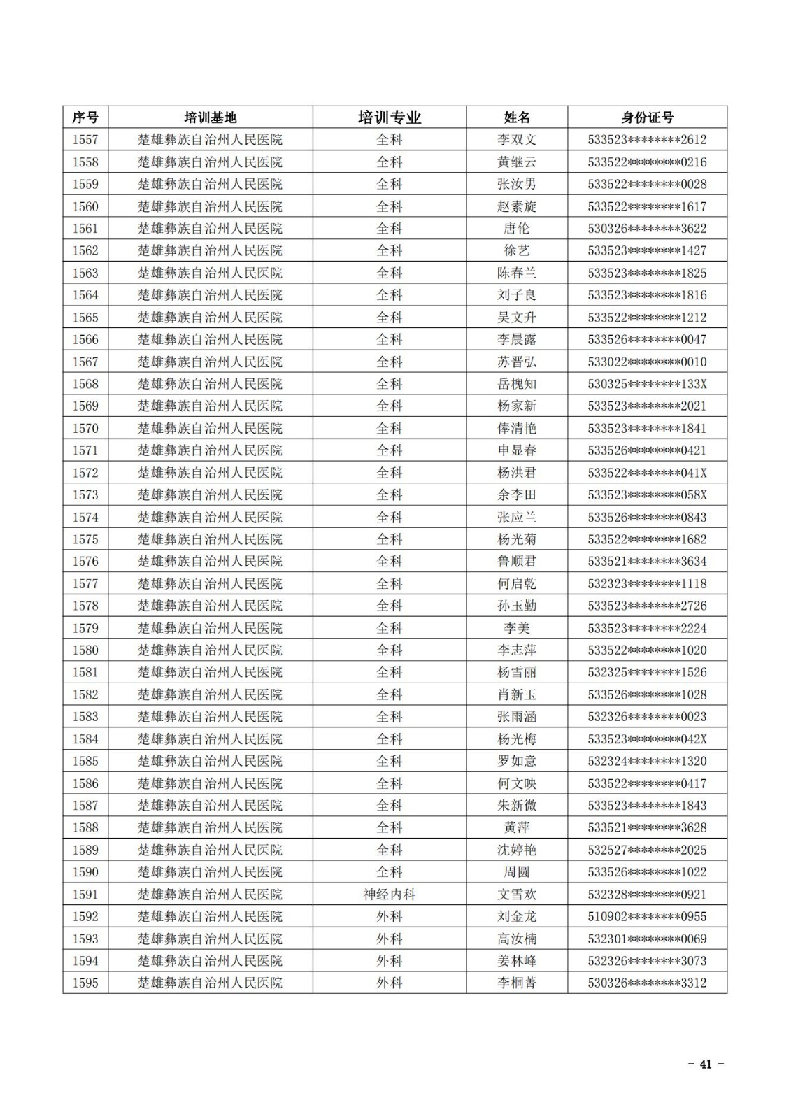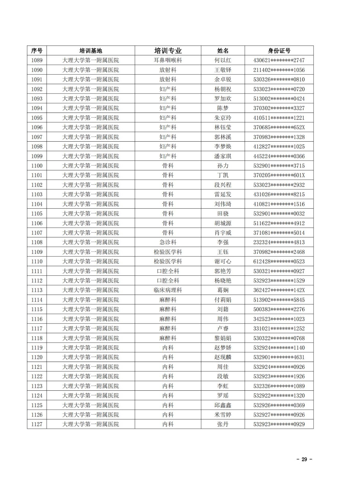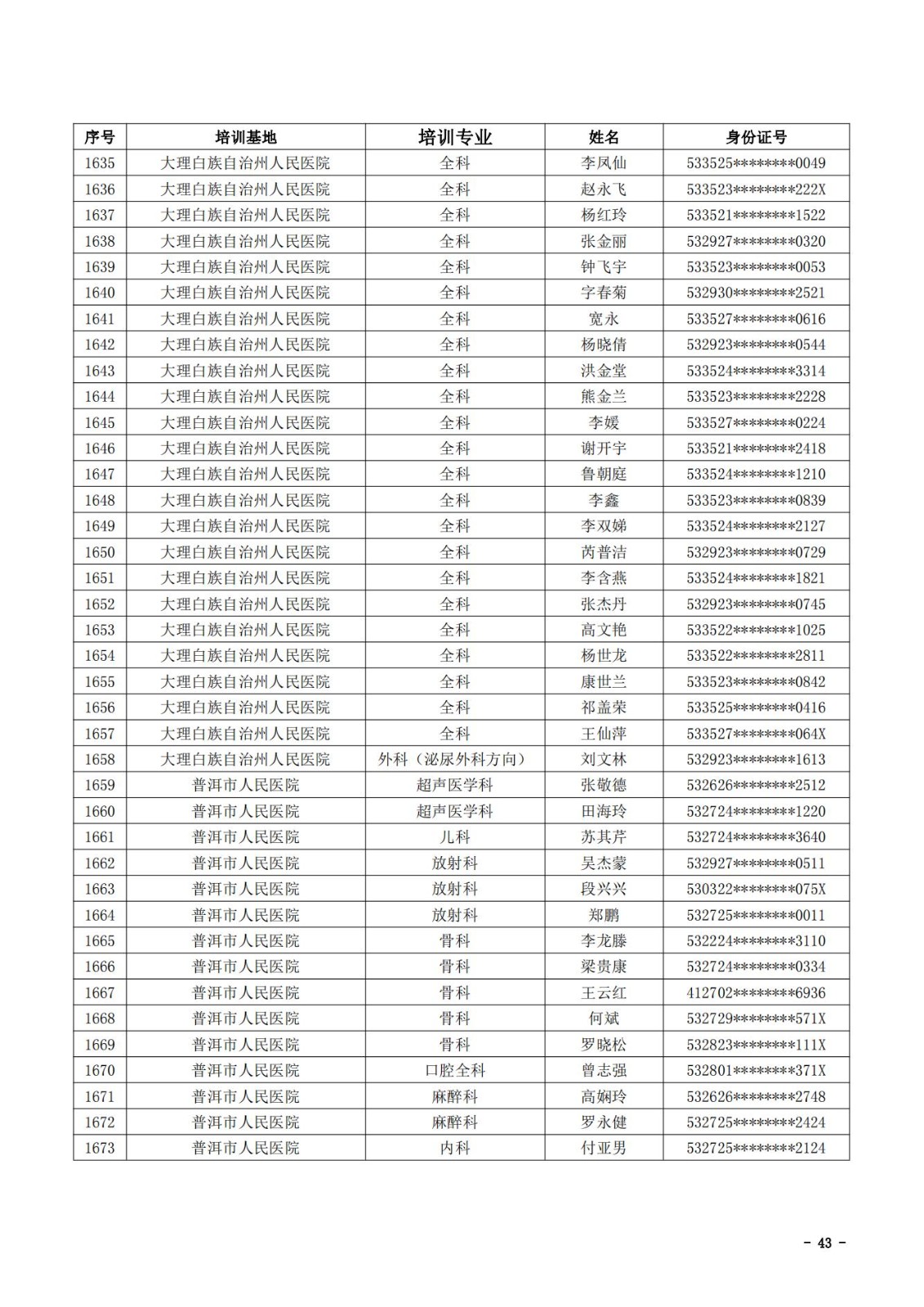 2021年云南省住院医师规范化培训和助理全科医生培训结业考核(西医类)合格人员名单
