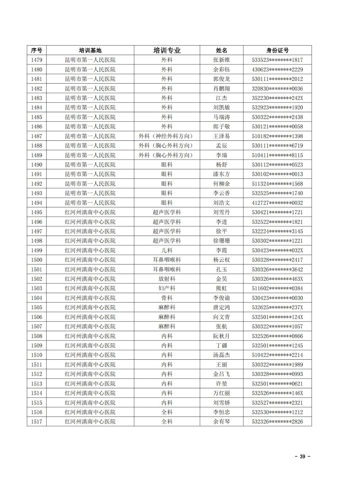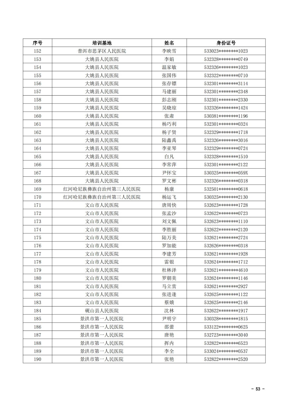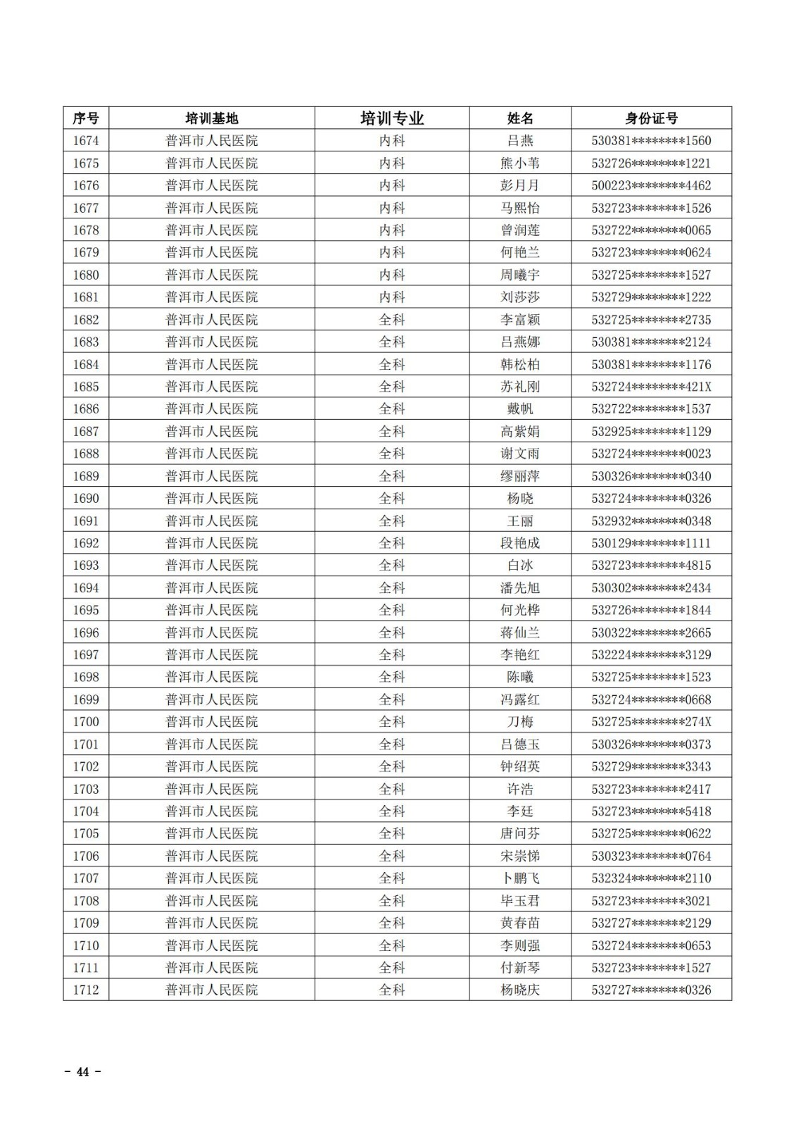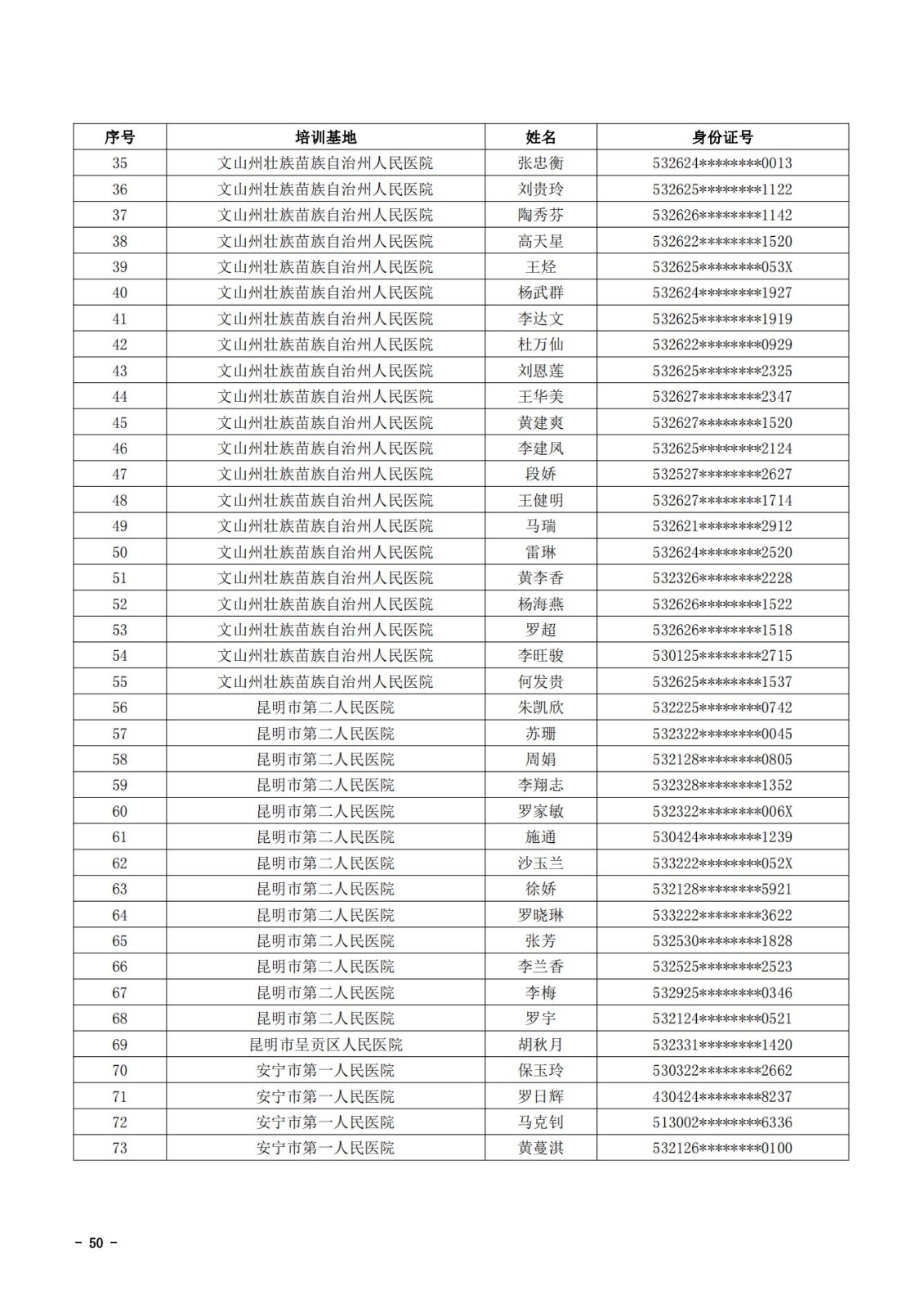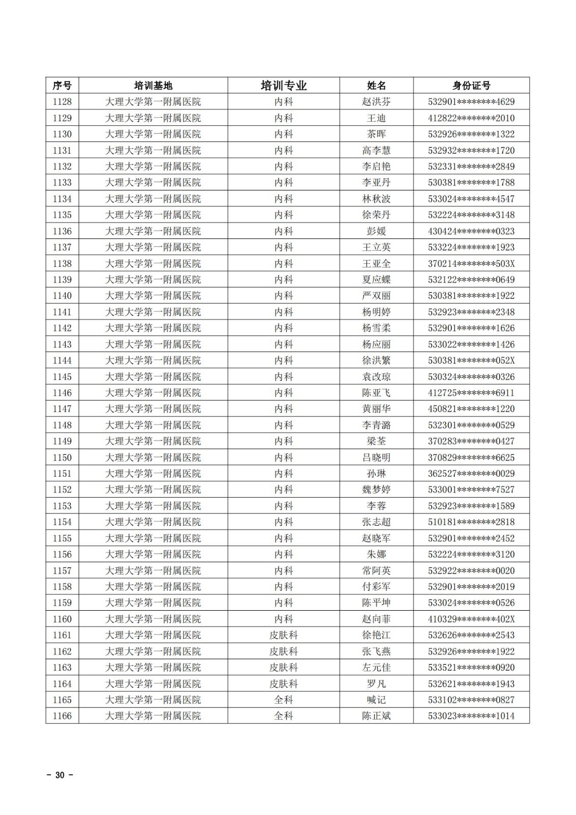 2021年云南省住院医师规范化培训和助理全科医生培训结业考核(西医类)合格人员名单