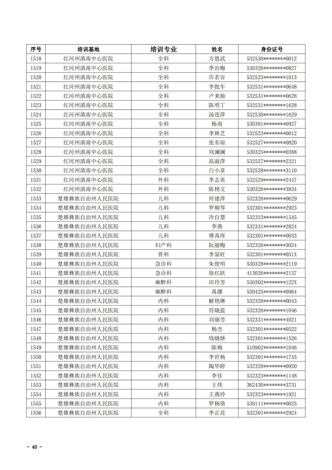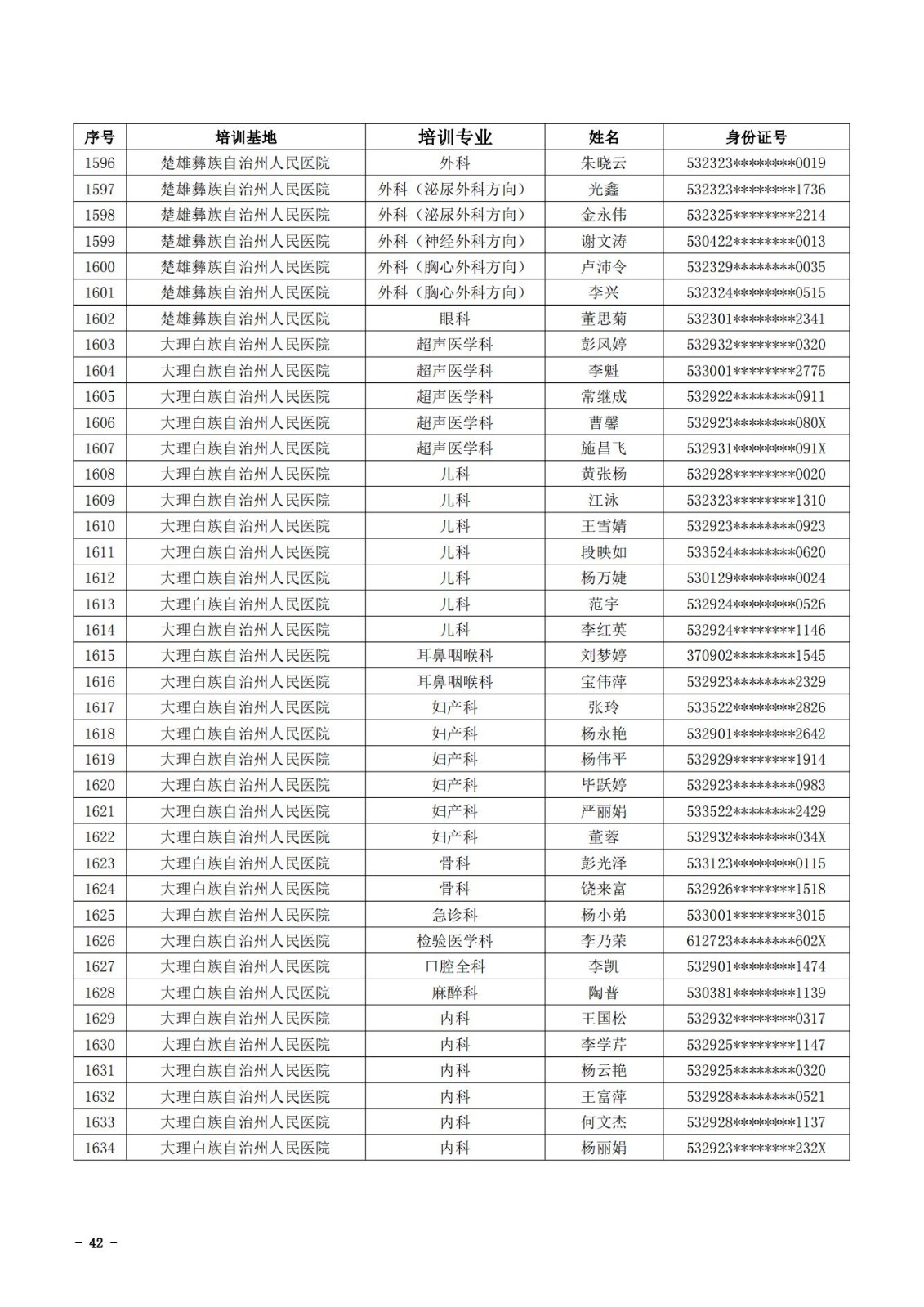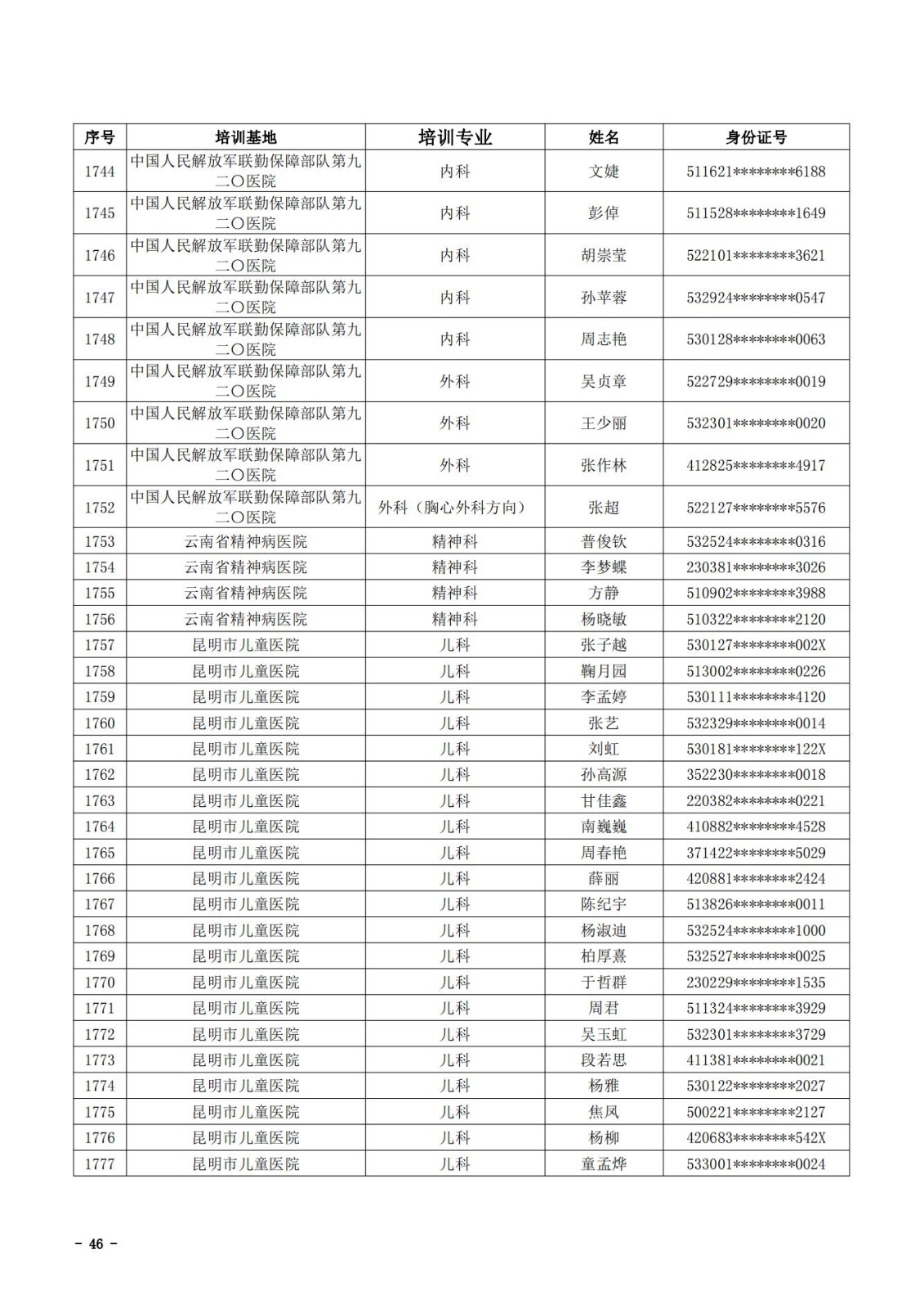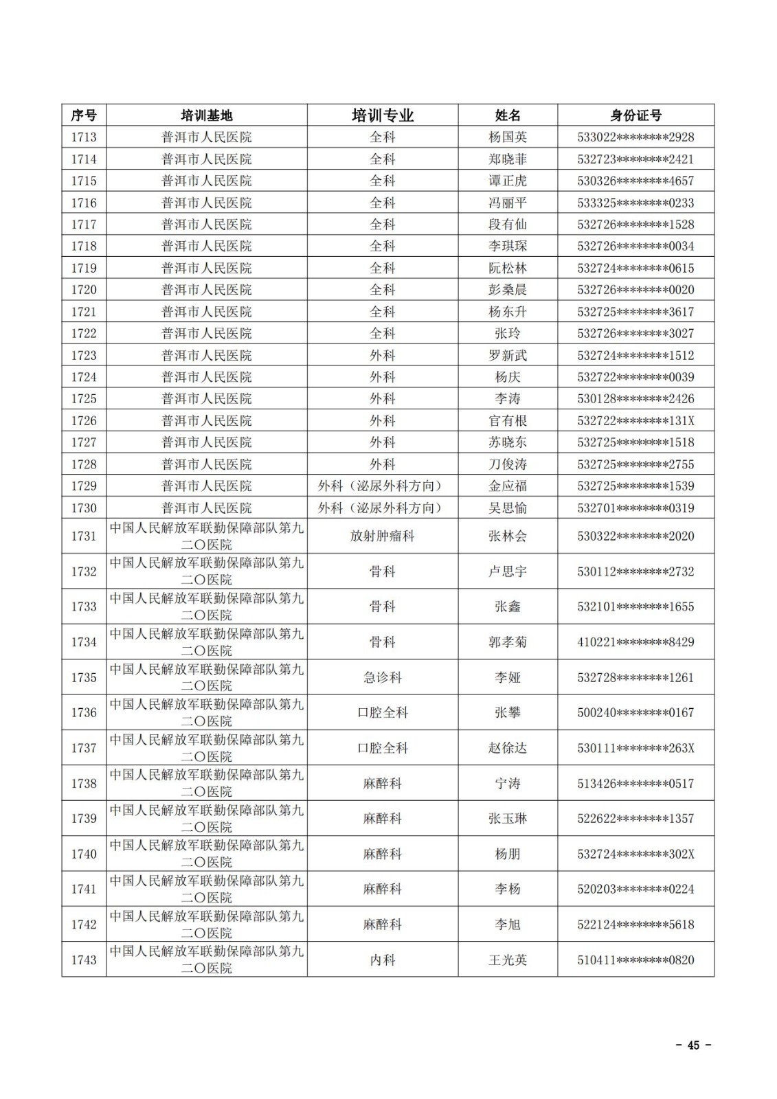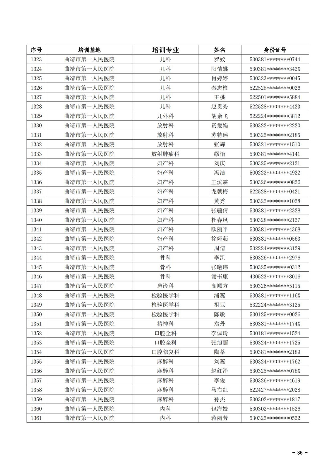 2021年云南省住院医师规范化培训和助理全科医生培训结业考核(西医类)合格人员名单
