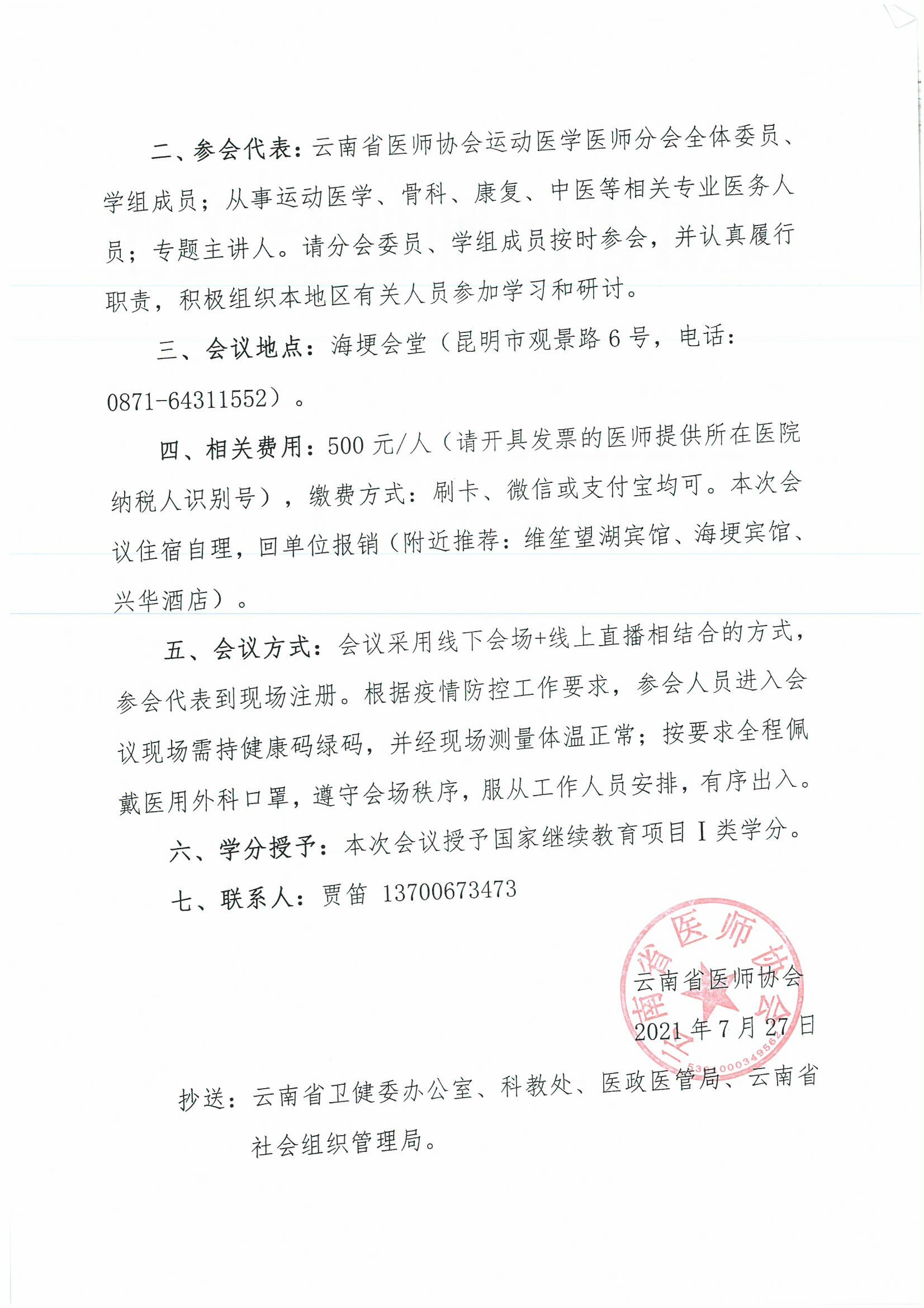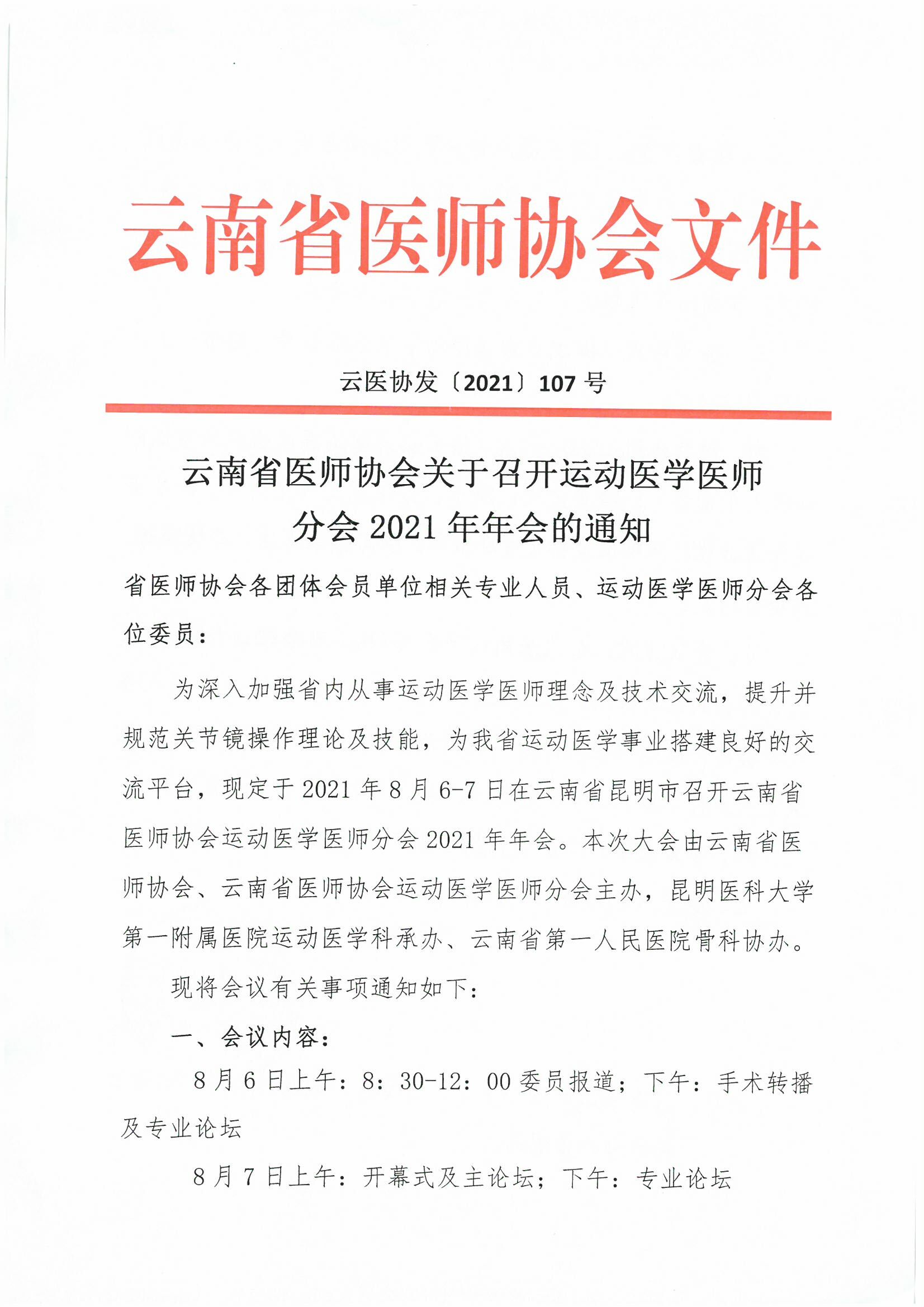 107号-云南省医师协会关于召开运动医学医师分会2021年年会的通知