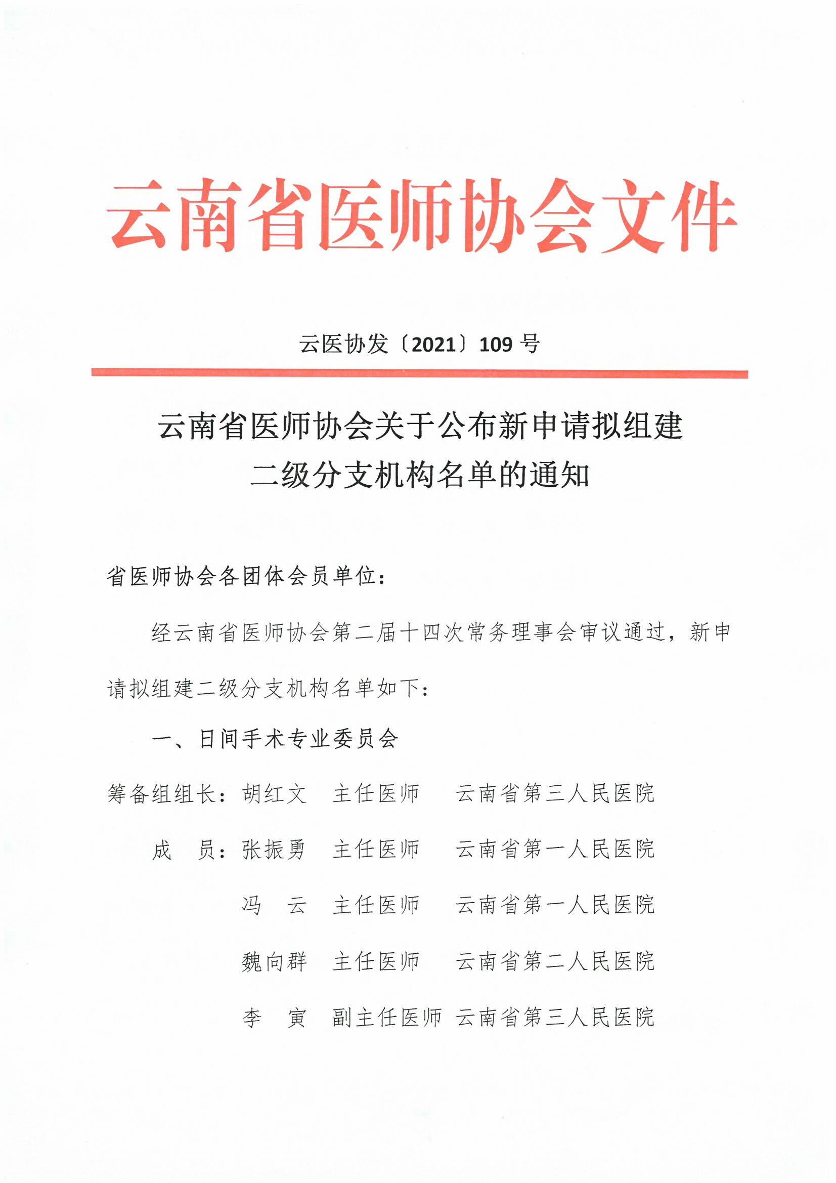 109号红头-云南省医师协会关于公布新申请拟组建二级分支机构名单的通知.pdf