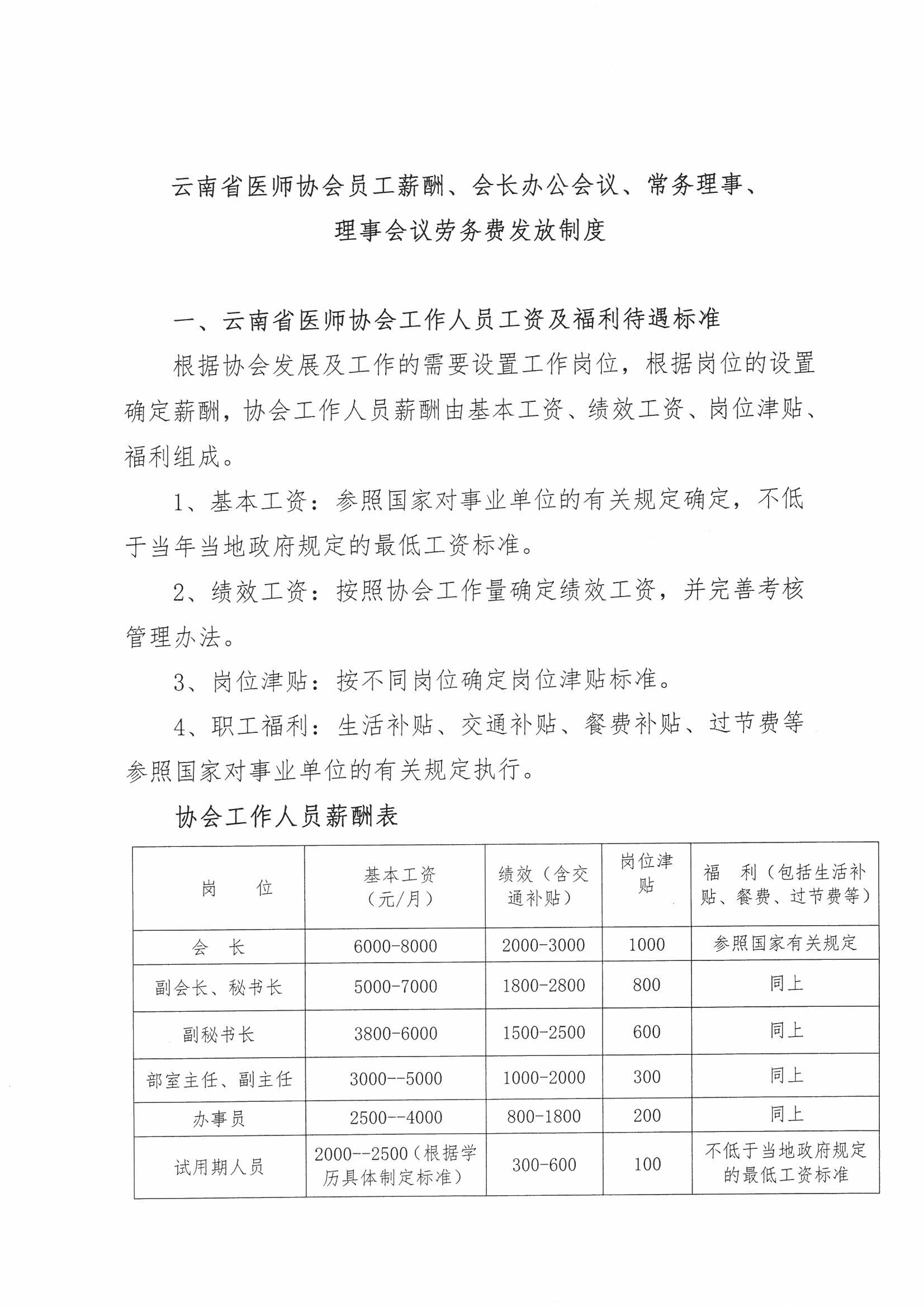 115号红头附件-云南省医师协会员工薪酬、会长办公会议、常务理事、理事会议劳务费发放制度.pdf