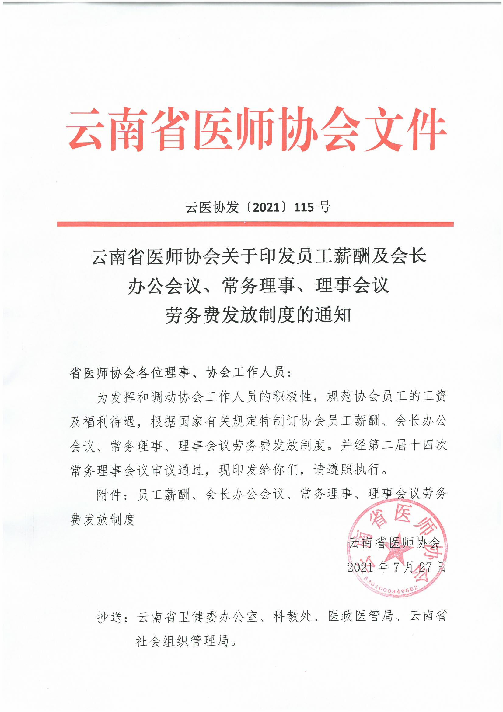 115号红头-云南省医师协会关于薪酬制度、会长办公会议、常务理事、理事会议劳务费发放制度的通知.pdf