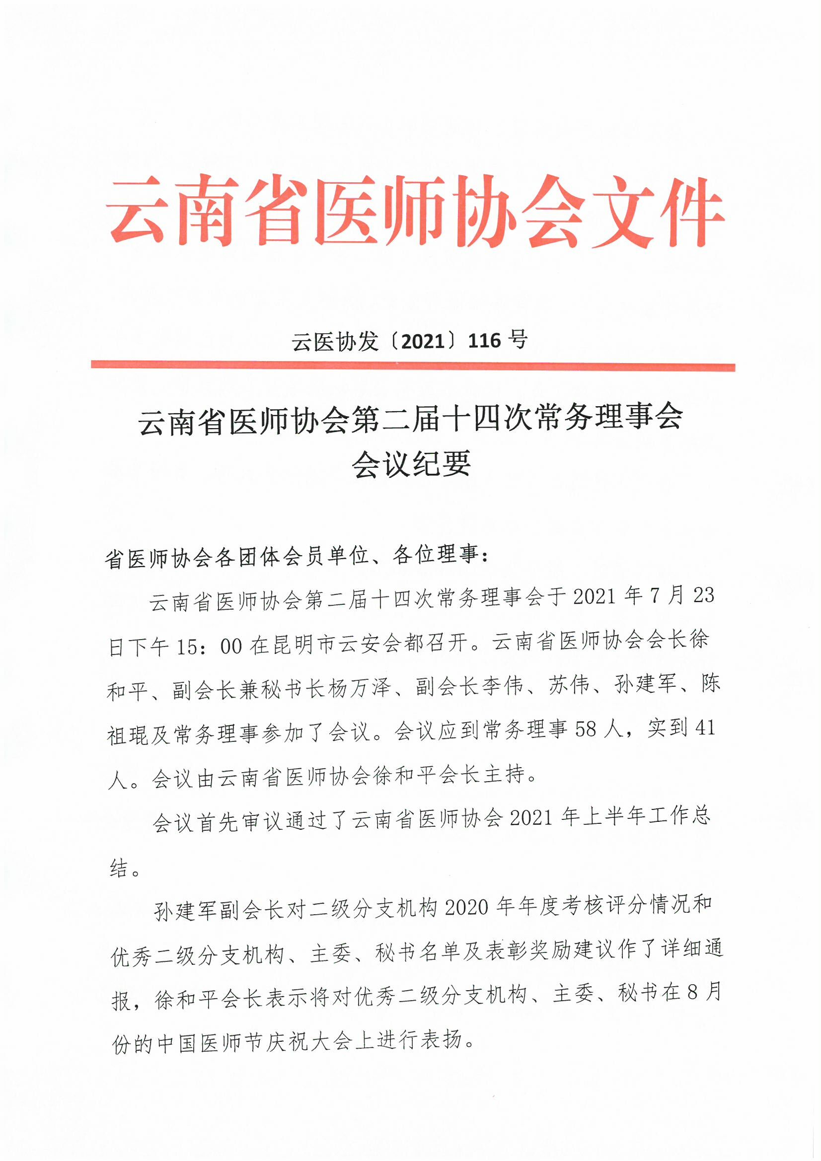 116号-云南省医师协会第二届十四次常务理事会会议纪要