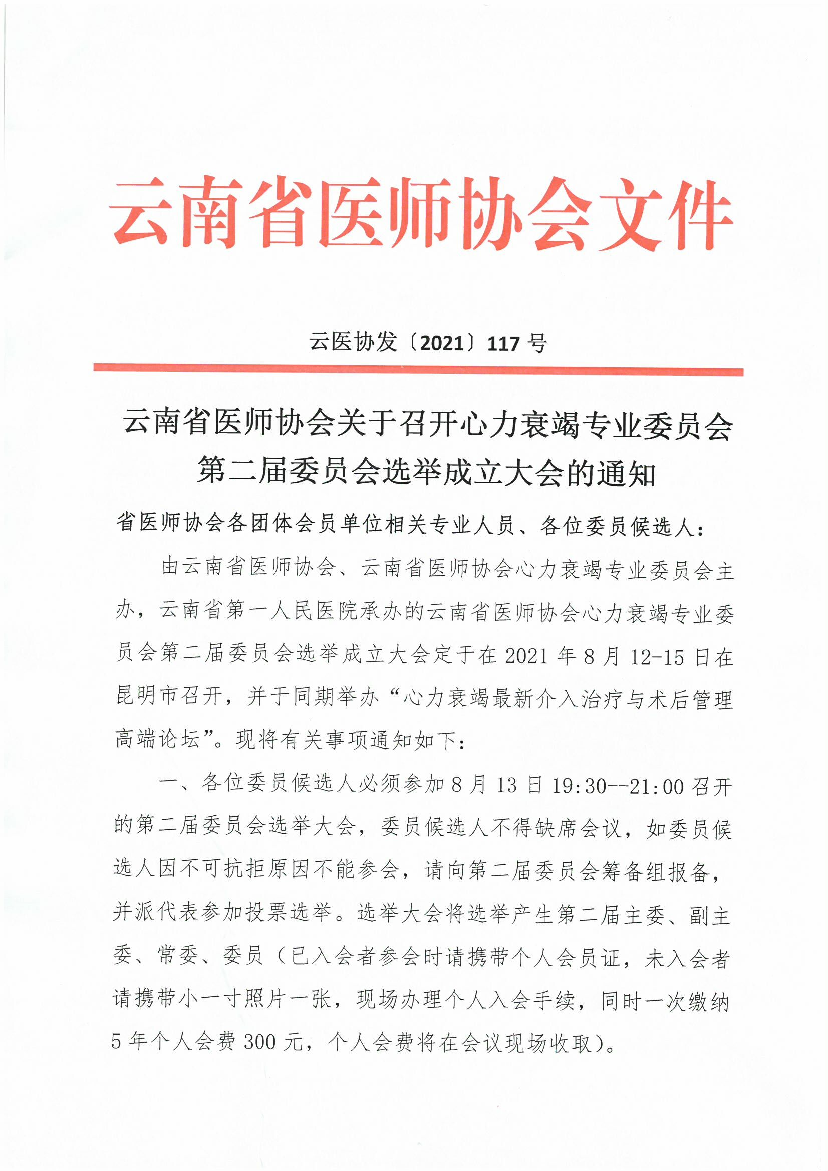117号红头-云南省医师协会关于召开心力衰竭专业委员会第二届委员会选举成立大会的通知.pdf