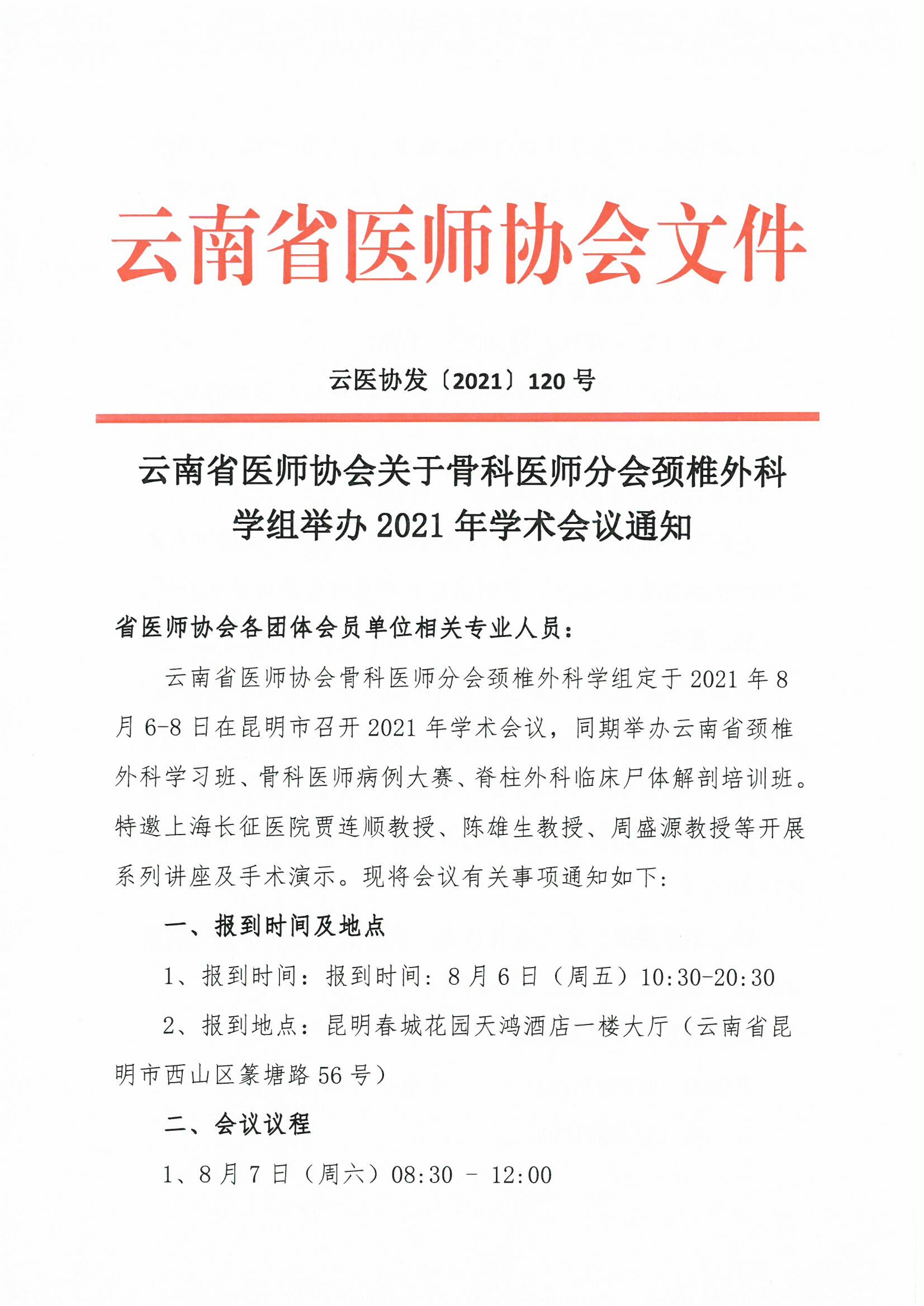 120号-云南省医师协会关于骨科医师分会颈椎外科学组举办2021年学术会议通知