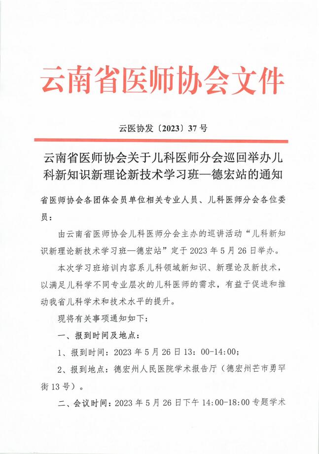 37号-云南省医师协会关于儿科医师分会巡回举办儿科新知识新理论新技术学习班—德宏站的通知.pdf