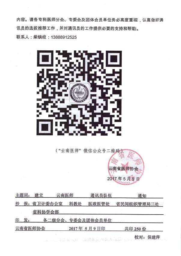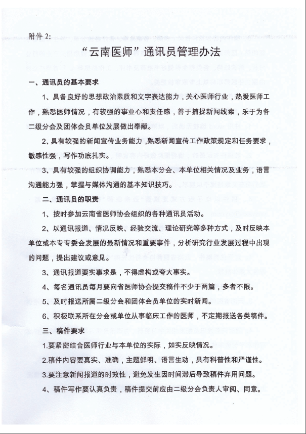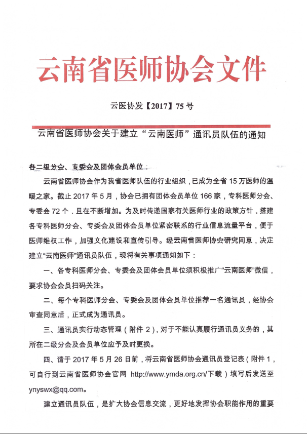 云南省医师协会关于建立“云南医师”通讯员队伍的通知