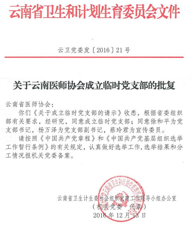 云南省医师协会关于健全完善临时党支部相关制度成立培训部的通知