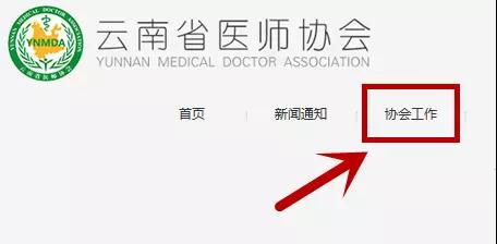 1、打开浏览器搜索“云南省医师协会”进入协会官网,点击“协会工作”。
